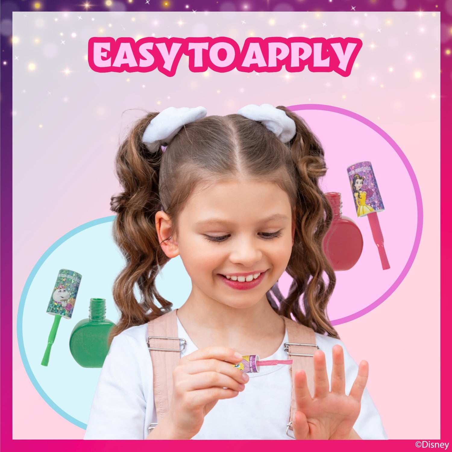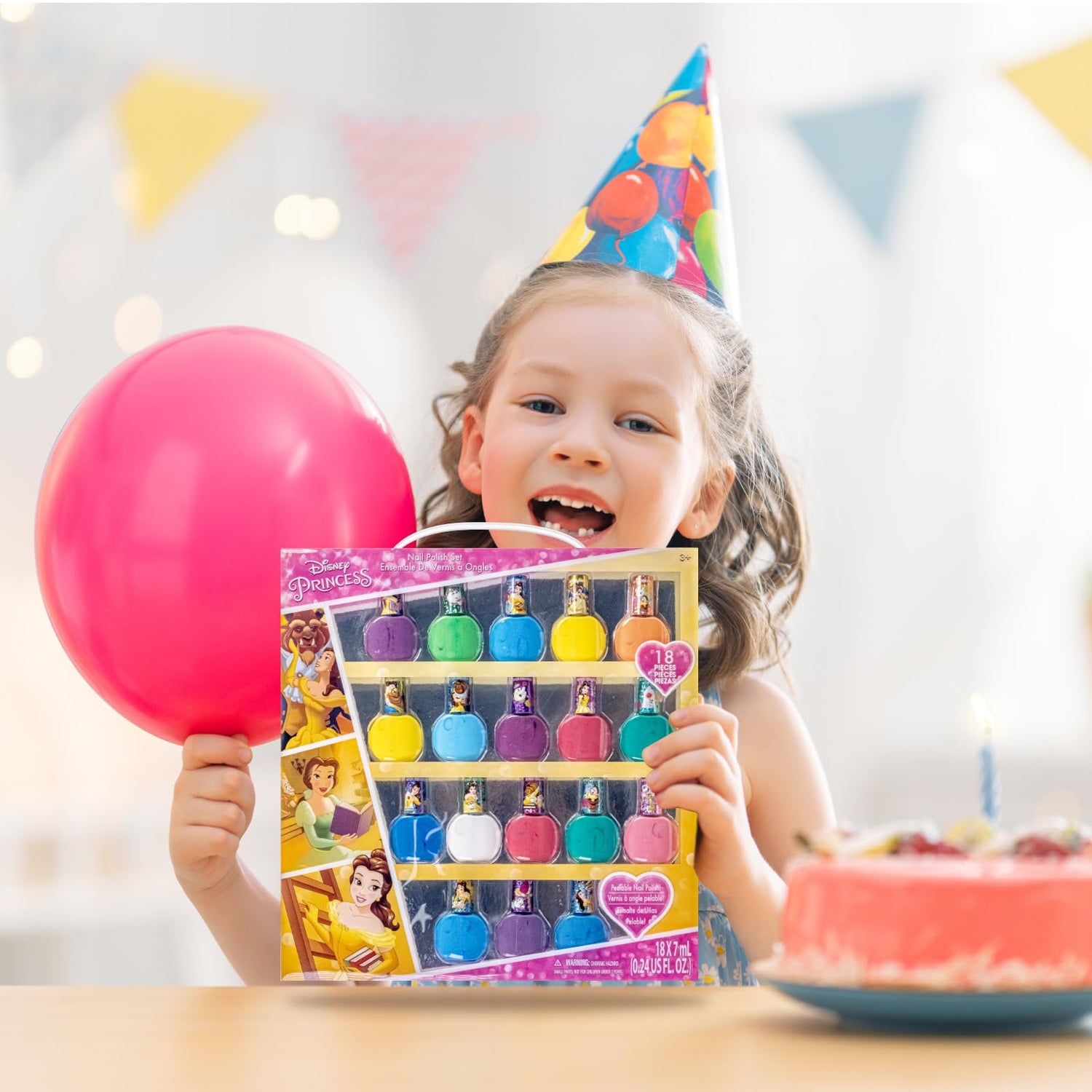 Townley Girl Disney Princess Belle 18 Piece Water-Based Nail Polish Set, Quick Dry and Peels-Off, Nail Paint Set for Girls, Perfect for Parties, Sleepovers and Makeovers, Ages 3