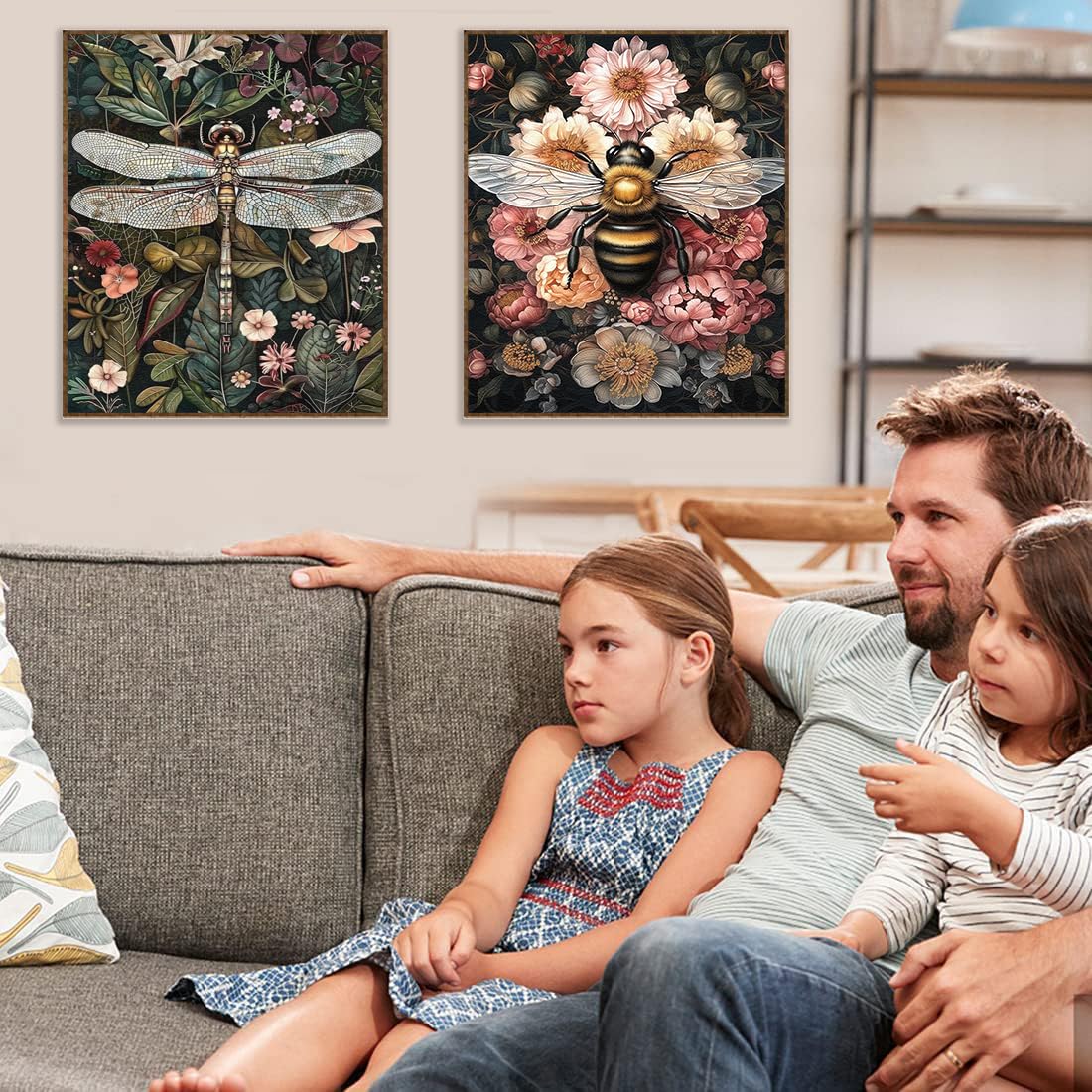 4 Pack Diamond Art Kits for Adults Beginners,Dragonflies, Butterflies, Moths, Bees Full Round Drill DIY Diamond Painting Kits,Paint by Diamonds Dot Gem Art Crystal Easy,Home Wall Decor 12x16Inch