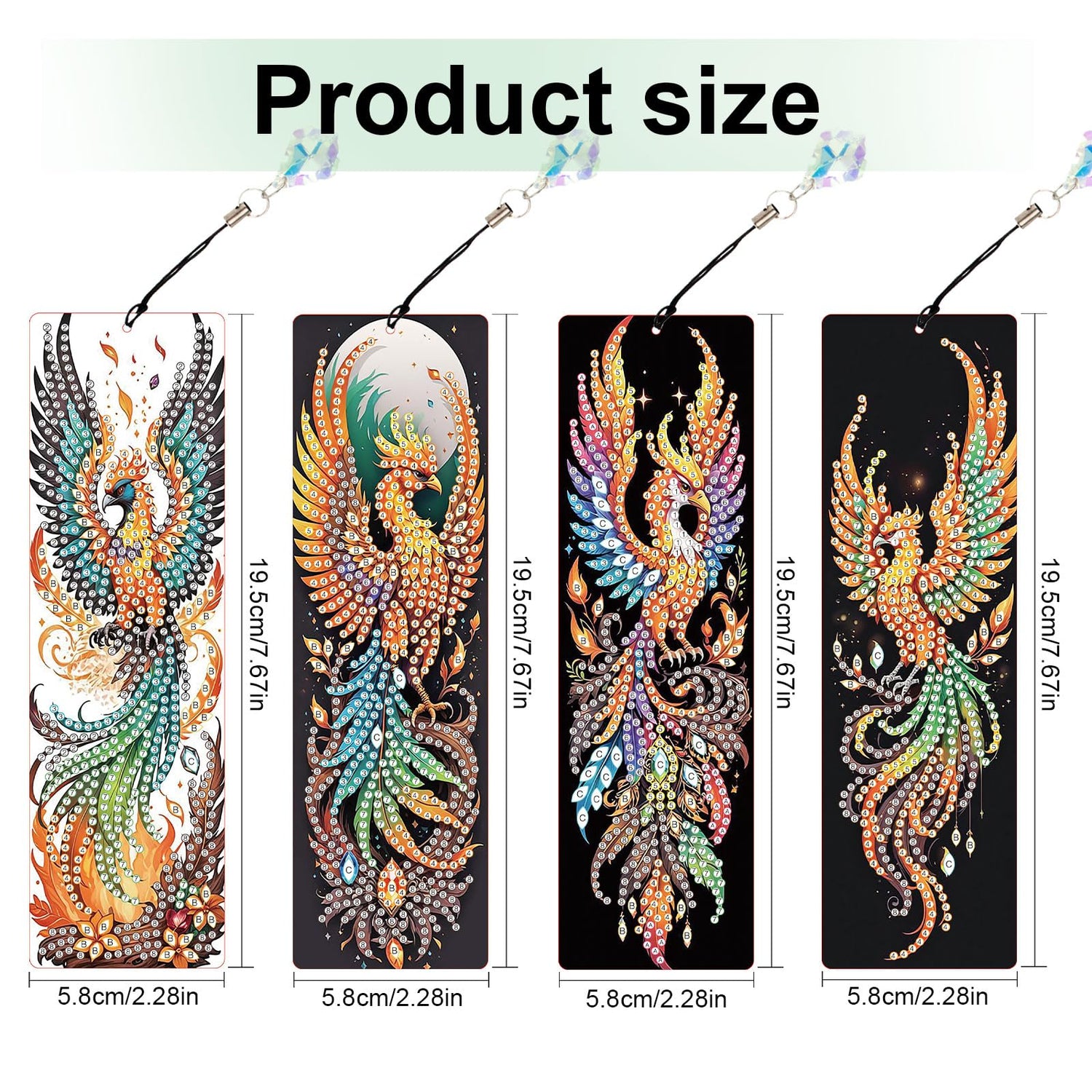 4 Pack Diamond Painting Bookmark Kits of Phoenix, Special Shaped Diamond Art Bookmarks with Pendant, DIY Handmade Crafts Home Office Supplies Reading Bookmark, Perfect Gift for Book Lovers