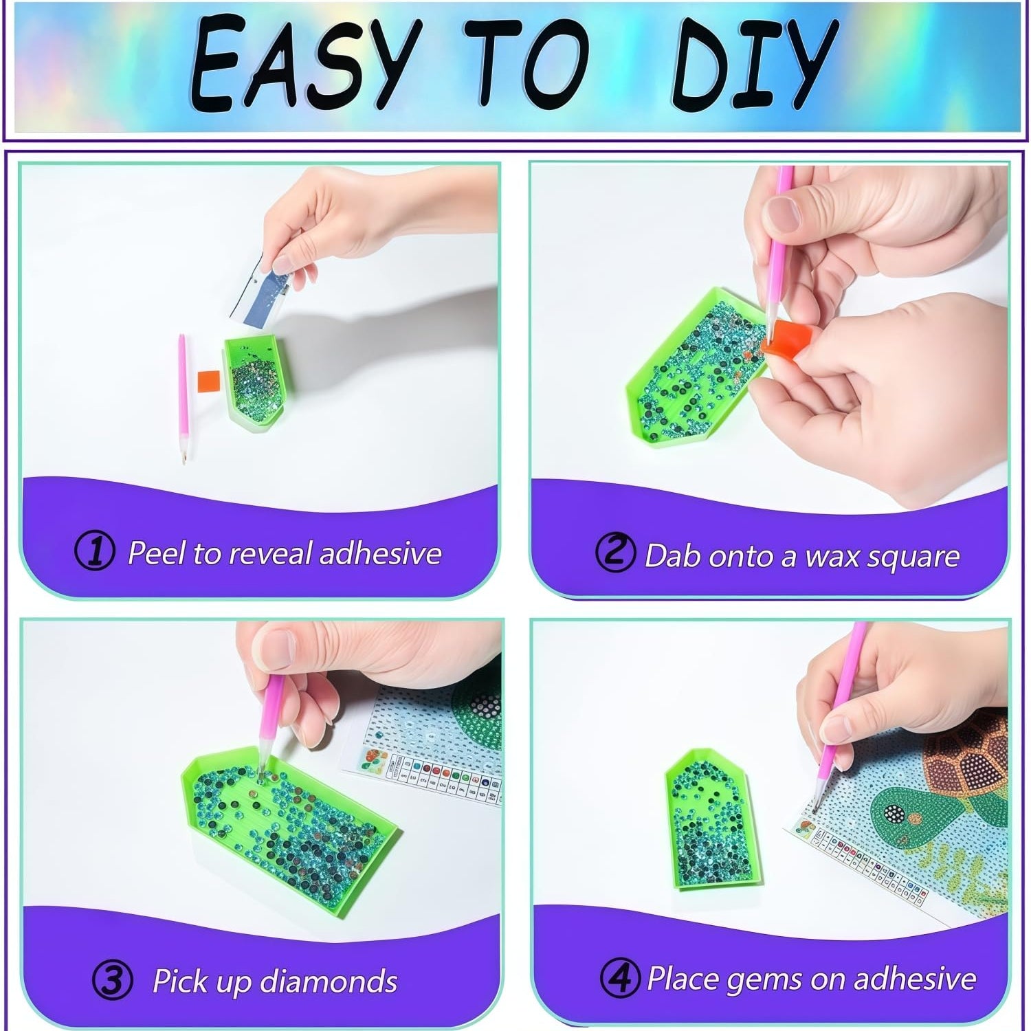 3.All the crystal paint by diamonds tools are included and all the pieces were easy to work with and sturdy, remove the adhesive, grab stylus and pick up and place gems where you want them, diamond dot art for kids is easy to do this project,Each size is 6x6 inch,perfect crafts for kids ages.9-12