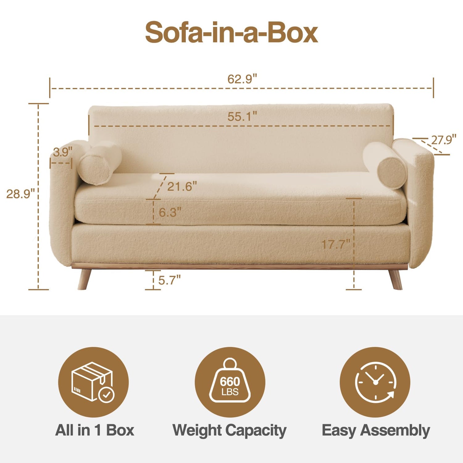 - Washable and Removable Cover: The boucle loveseats cushion covers and backrest covers can be removed for washing, allowing you to maintain the look and comfort for a long time and adjust the upholstery whenever you want