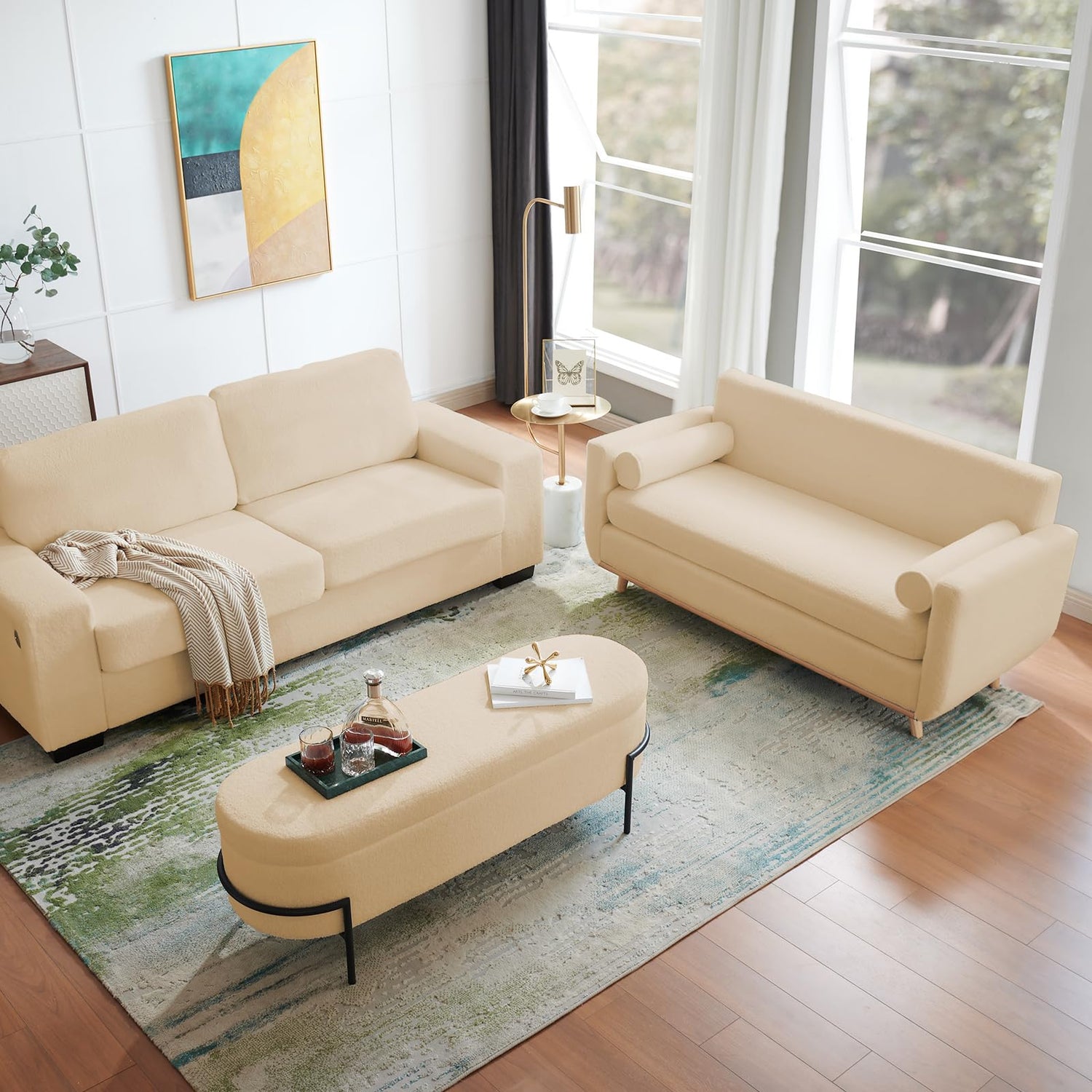 - Fluffy Boucle Fabric: Our small sofa couch is covered in a breathable, soft to the touch lambswool fabric, that makes you feel fresh and cozy when you sit on it, doubly relaxing and comfortable. Ideal for your home sofa living room
