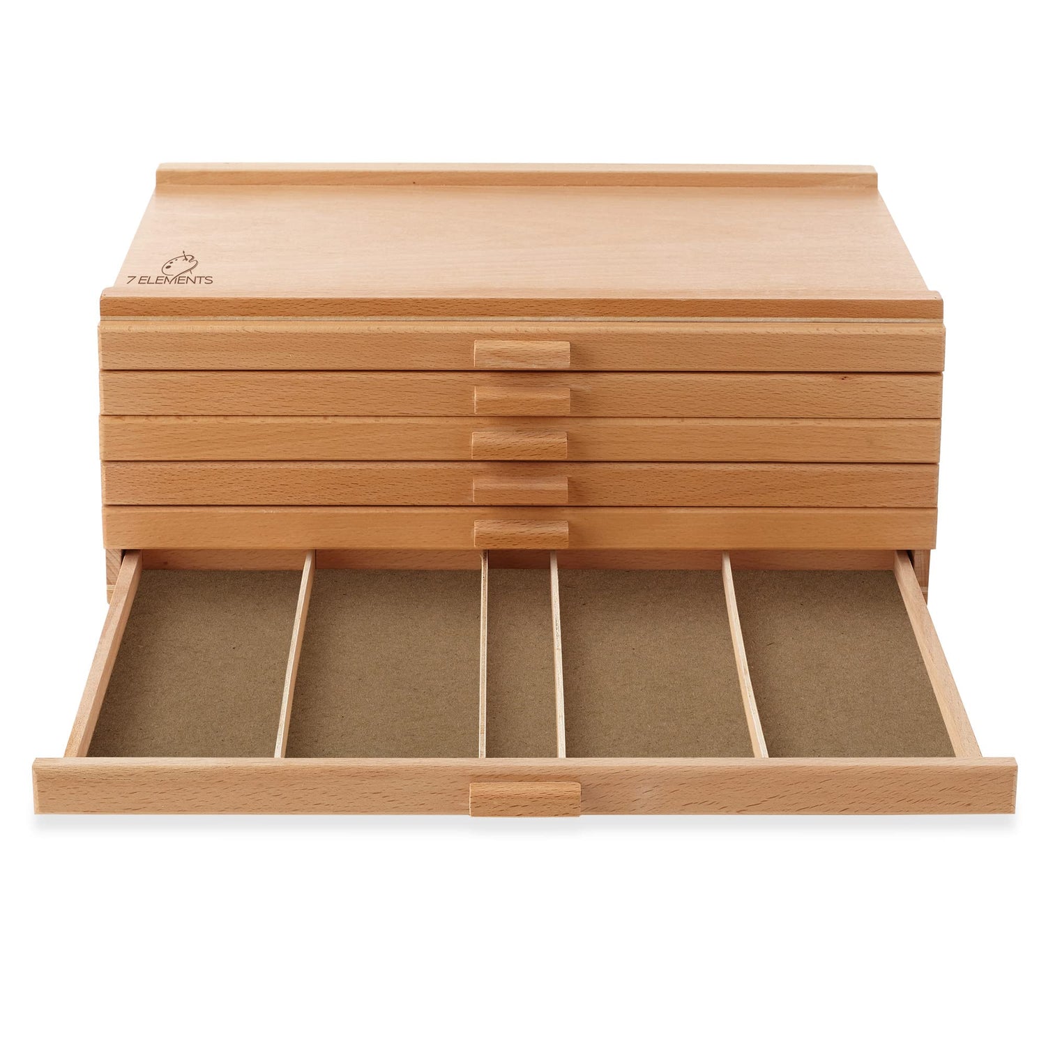 7 Elements 6 Drawer Wooden Artist Storage Supply Box for Pastels, Pencils, Pens, Markers, Brushes and Tools