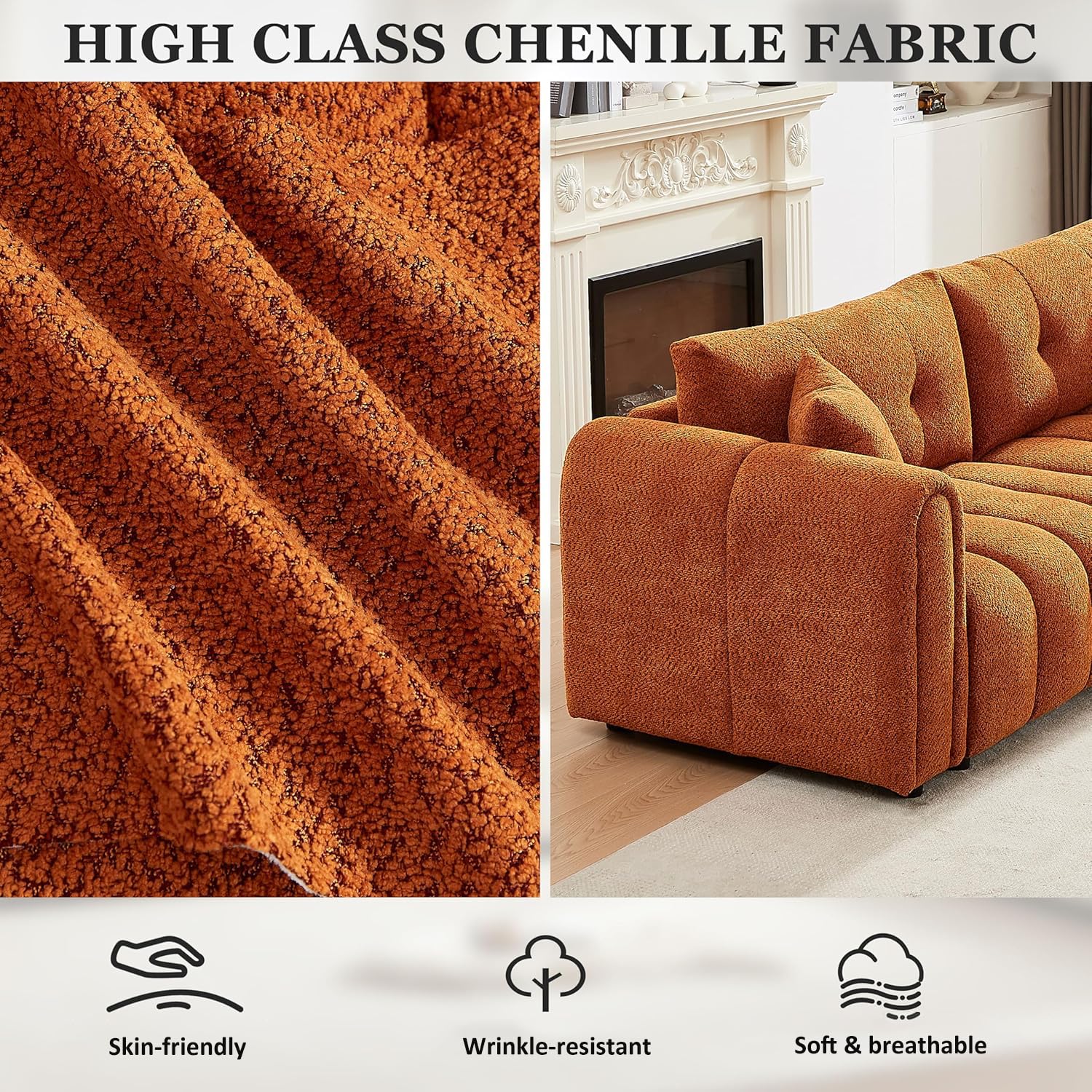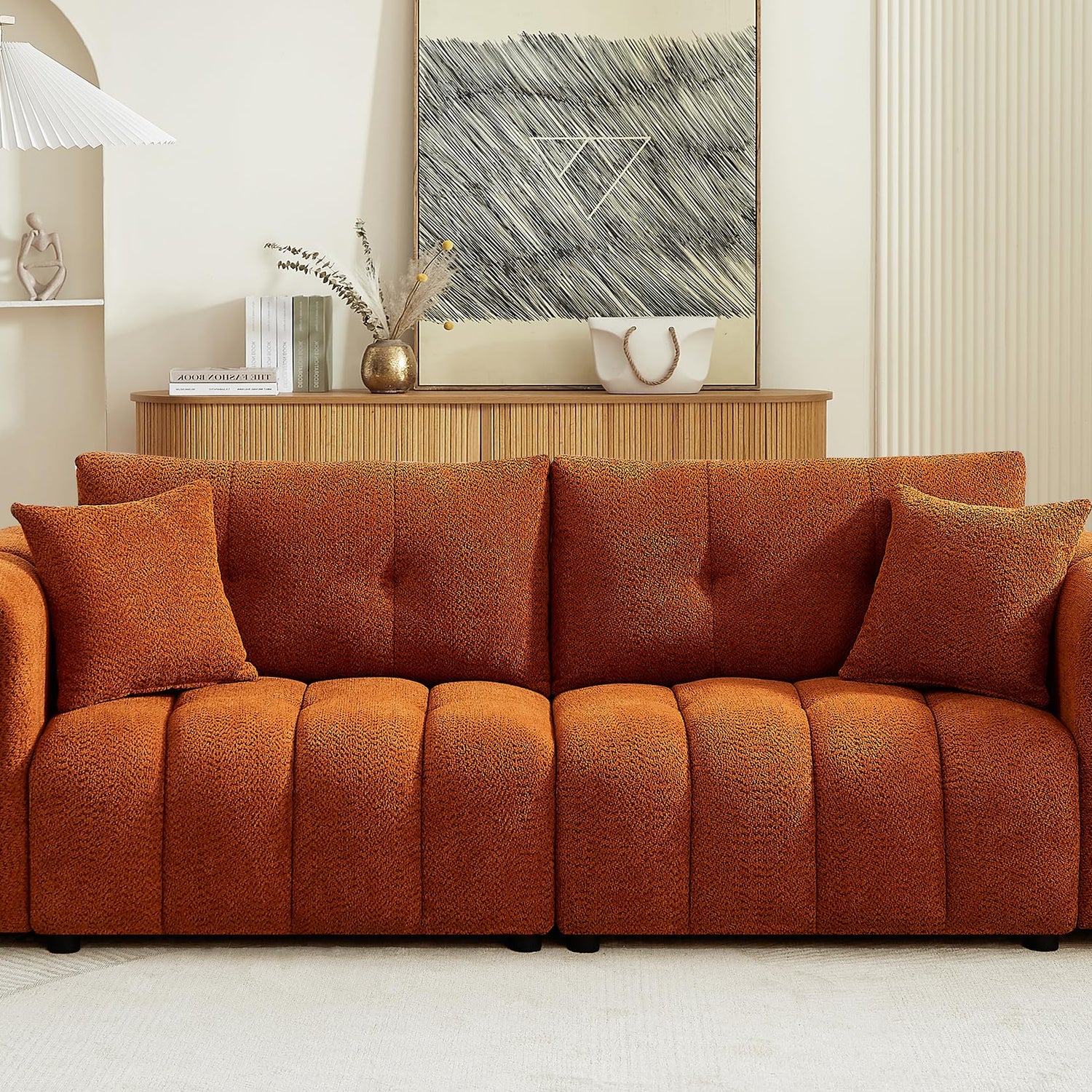 91.5" Modern Boucle Sofa with Deep Seat, 3 Seater Comfy Sherpa Cloud Couch, Oversized Loveseat Mid-Century Modern Tufted Couches for Living Room Apartment Lounge, Orange