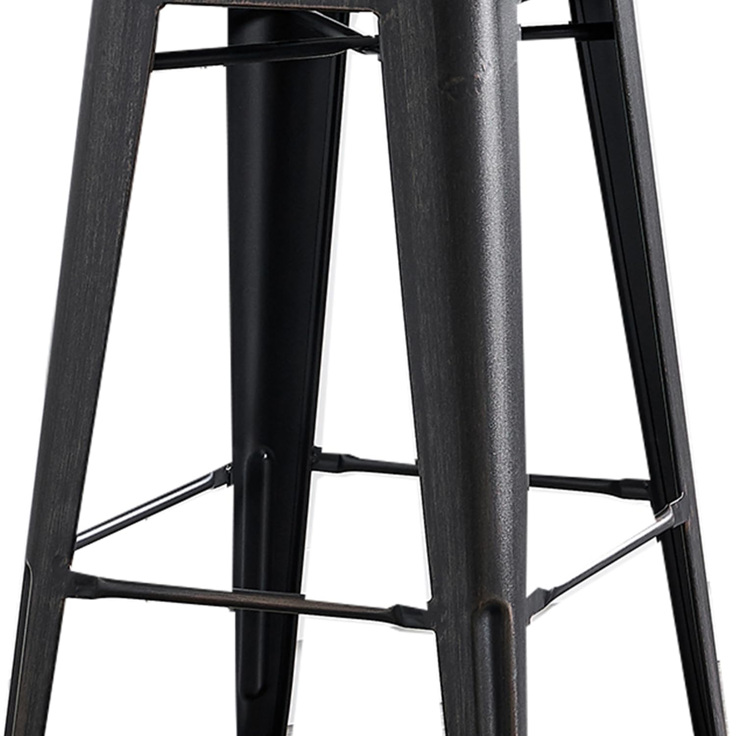 - Country Rustic Charm (Set of 2) – Each box includes two metal bar stools featuring a distressed matte finish, low-back silhouette, and rubber foot caps to protect your floors. The rustic-industrial look blends seamlessly with farmhouse, modern, or industrial decor styles.