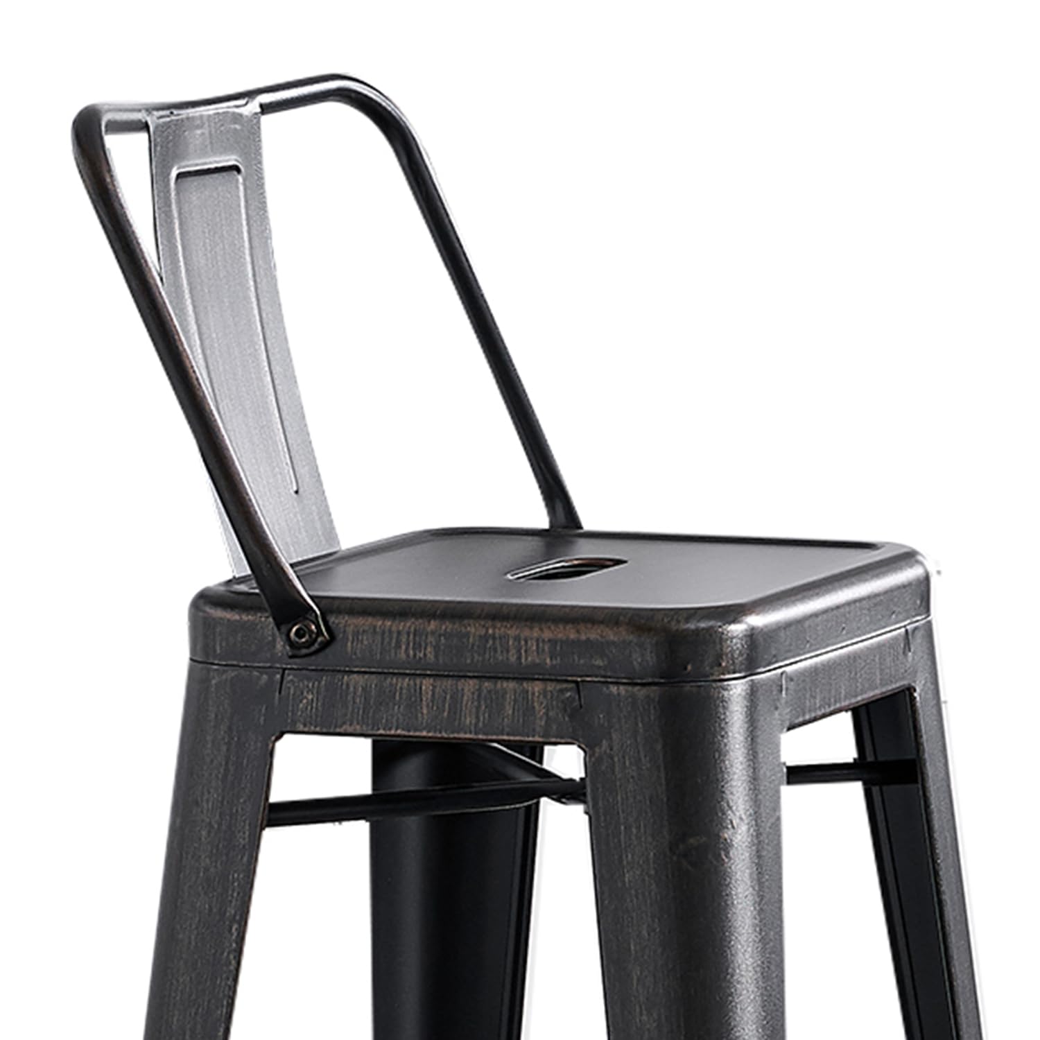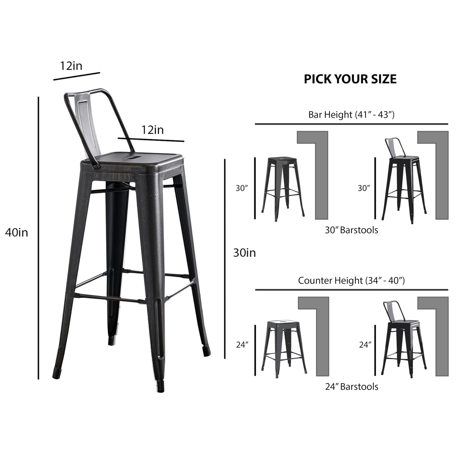 AC Pacific 30” Metal Barstool Set of 2 – Country Rustic Style with Low Back, Lightweight & Sturdy Build, Easy Assembly – Distressed Black
