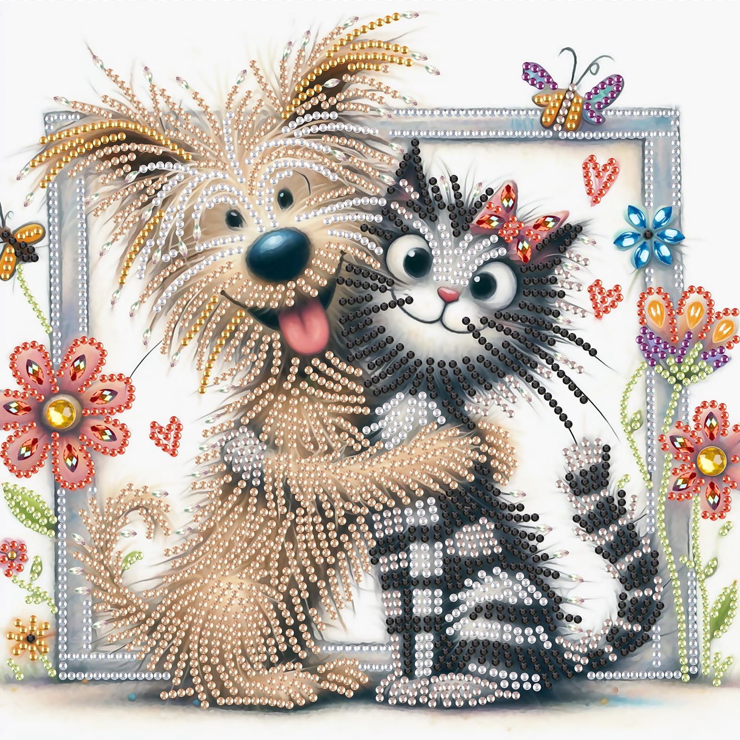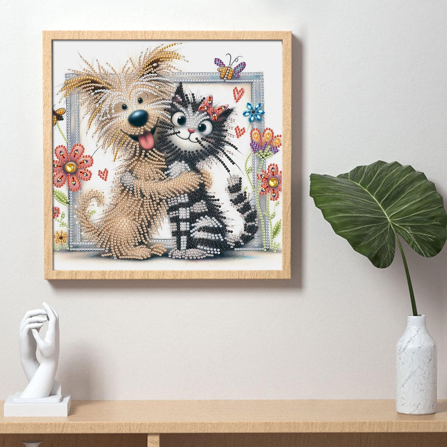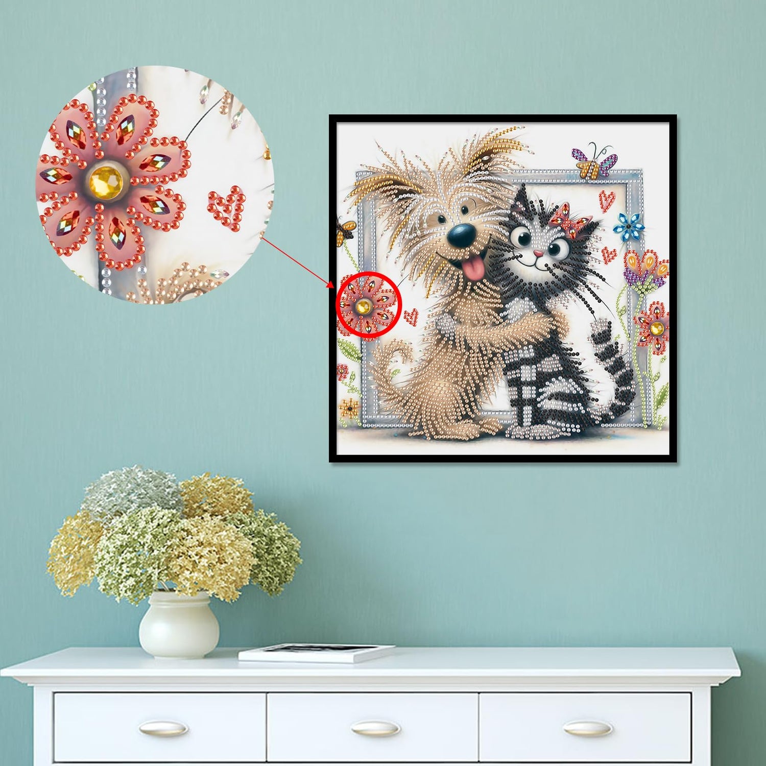 AiYuanzsh Cat and Dog Diamond Art Painting Kits for Adults, 5D Special Shape Diamond Art Kits for Beginners, Crystal Rhinestones Diamond Art Painting for Home Wall Decoration Gift 12×12 inch