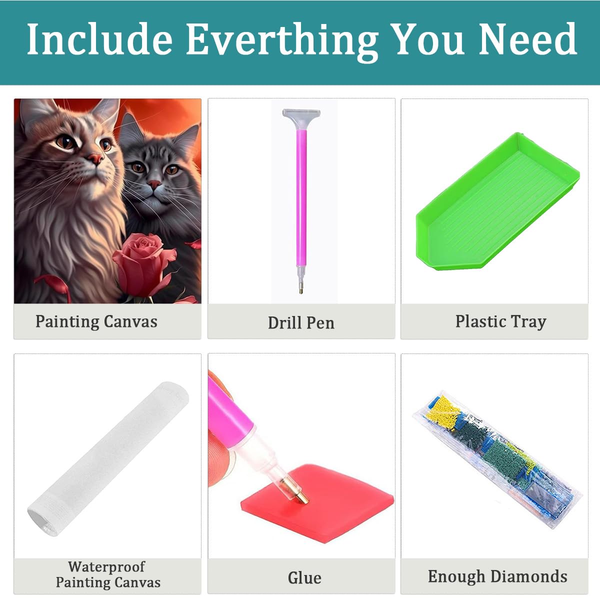 Details: DIY 5D Diamond Art Kits for Adults, 30x40cm Two Cats with Roses Crystal Bead Painting, Modern Artwork for Relaxation and Gift Giving