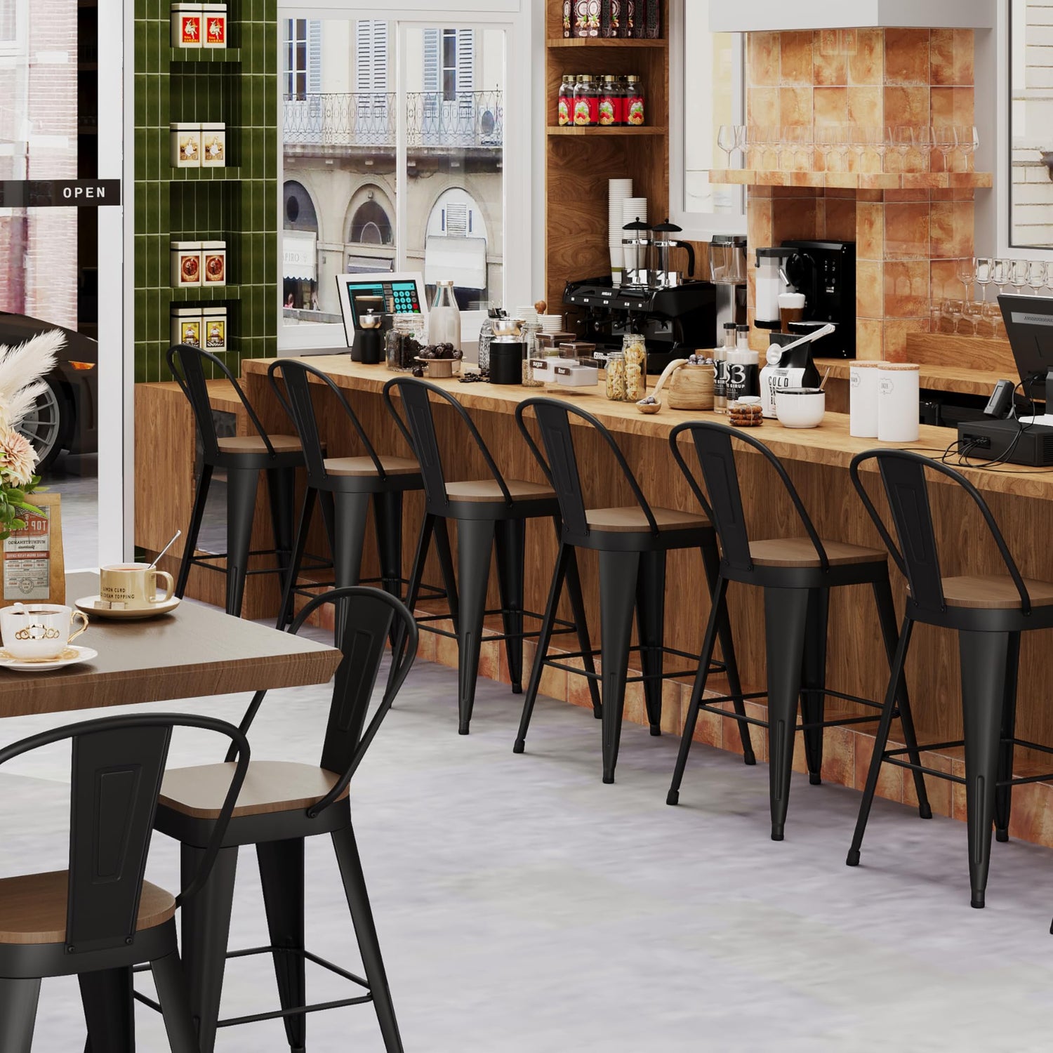 Andeworld Metal Bar Stools Set of 4, 24 inch Counter Height Barstools with Backs Farmhouse Modern High Back Bar Stools with Larger Seat Kitchen Dining Bar Chairs,Matte Black
