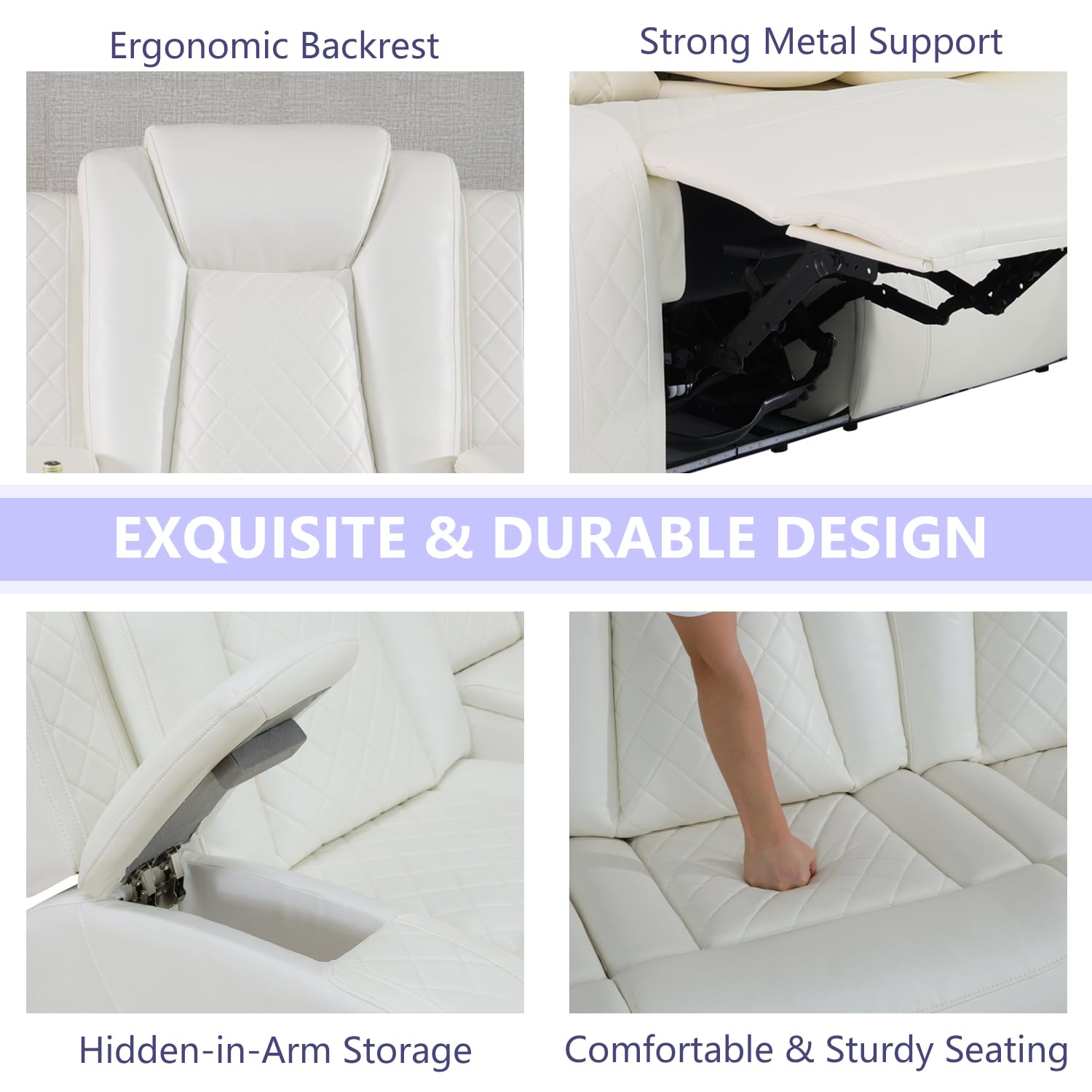 - Premium Comfort: This power reclining sofa features luxury breathing leather upholstery, padded armrests, and plush backrests for superior relaxation. The high-density foam cushions provide comfy support, while the ergonomic design cradles your body. Perfect for extended lounging, whether watching movies or napping—every seat offers all-day comfort without sagging.