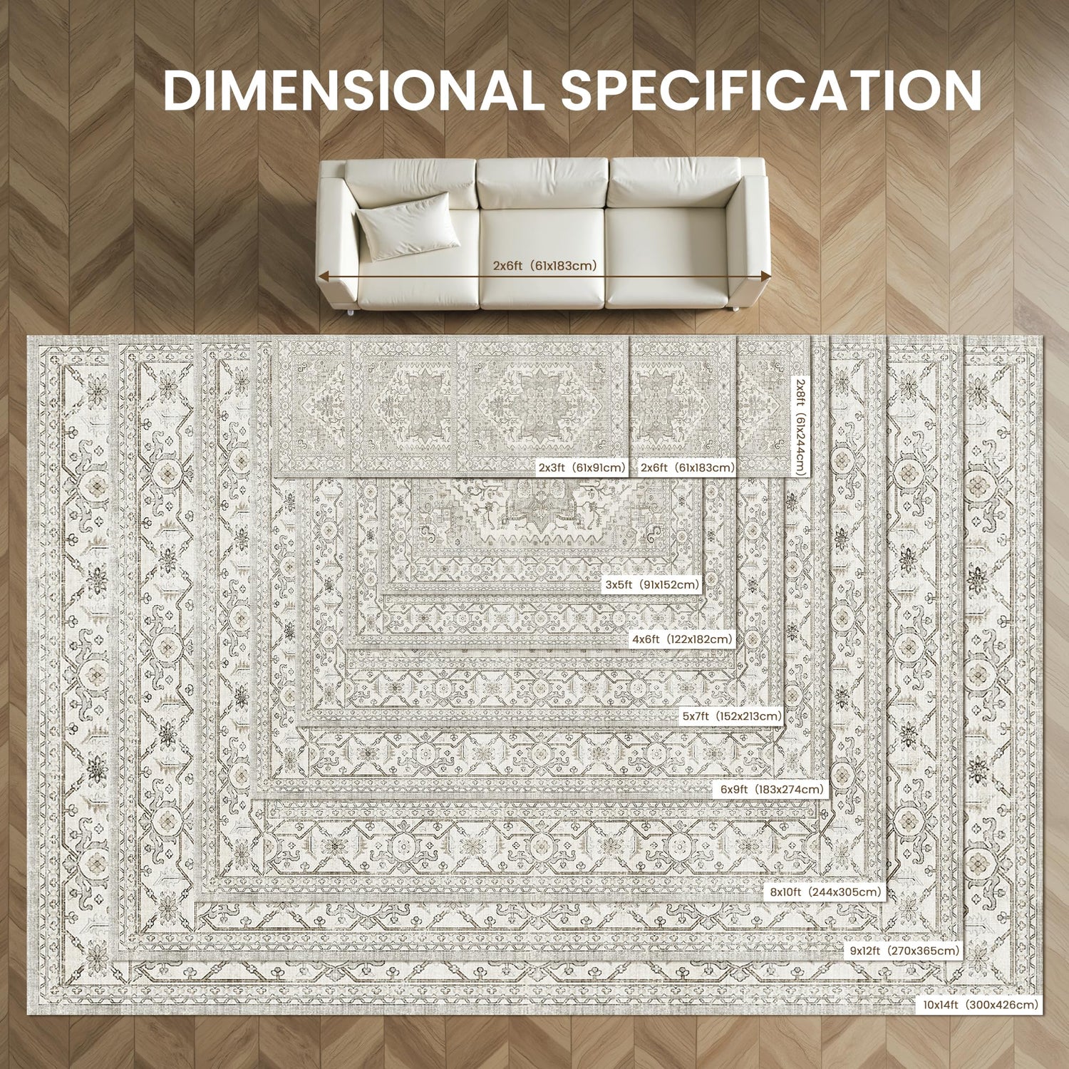 Area Rugs for Living Rooms - 6x9, Boho Non-Slip Low Pile Carpet Machine Washable Rugs for Bedroom, Farmhouse, Office, Dining Room (Beige)