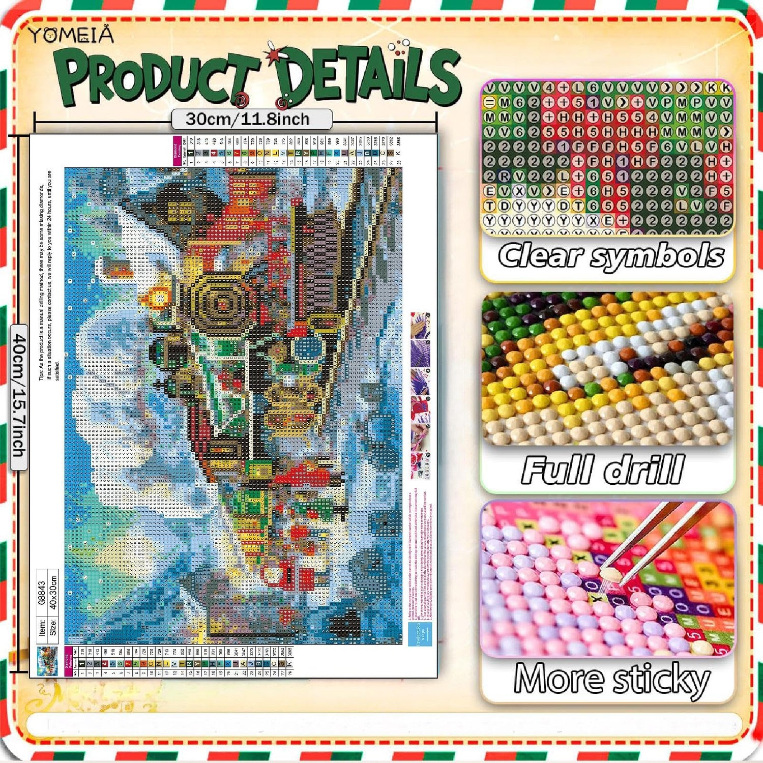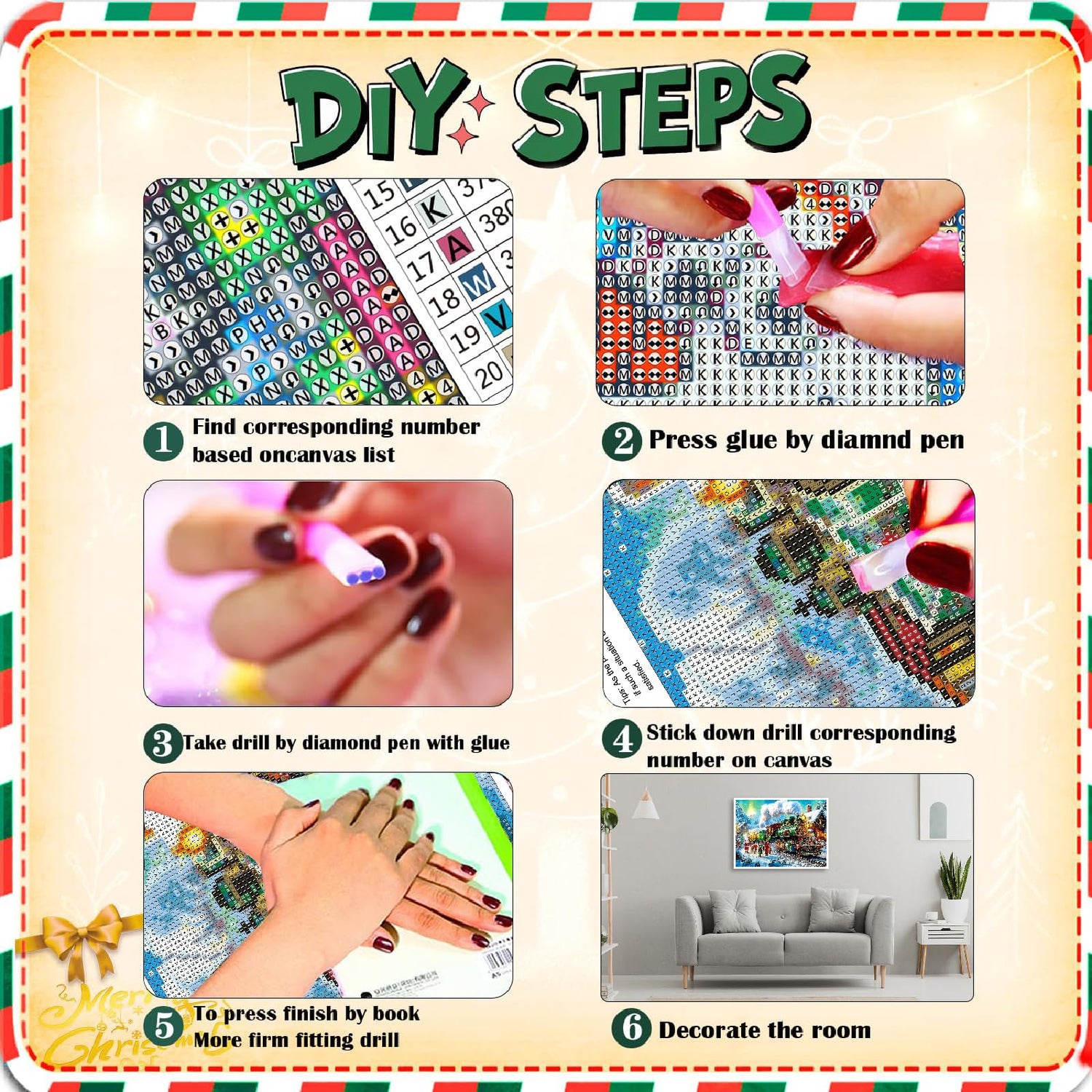 - Vibrant 5D Diamond Painting - Our 5D DIY christmas train design diamond art kits for adults is meticulously crafted to deliver unparalleled quality. Round gems cover the whole picture, making the picture more shinning and realistic, and the diamond art kits come as a canvas with a sticky background that is protected by a plastic covering, the background is in good look, the letter symbols are high-definiton and easy to read