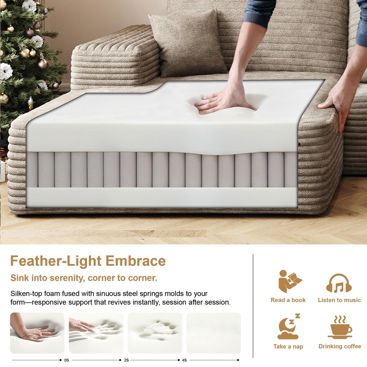 - Plush Corduroy Fabric:Feel the difference with our plush corduroy fabric, as soft as a hug from your favorite blanket. The rich texture and subtle sheen of this cloud couch elevate your living space, offering a tactile experience that pampers you. Cozy up and embrace the warmth and softness all year long with our modular sectional sofa.