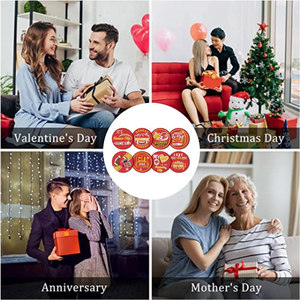 Bartogro 8 Pcs Diamond Painting Coaster Kits, DIY Football Diamond Art Coasters with Holder Sports Diamond Art Crafts Supplies for Kansas City Design