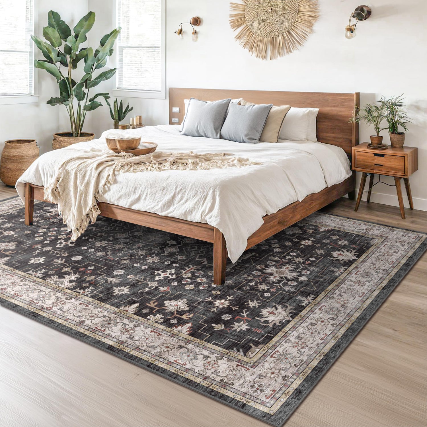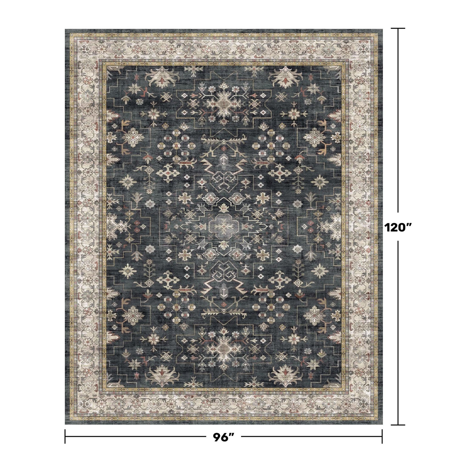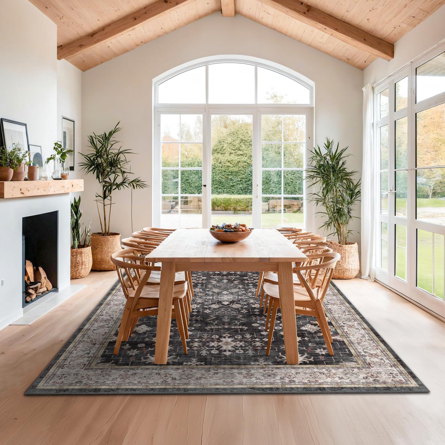 Black Farmhouse Washable 8x10 Area Rugs for Living Room, Bedroom, Dining Room Kitchen Table Rug for Under Table, Office, Dark Charcoal Tumble Stain Resistant Non-Slip Large Washable (8x10 Black/Multi)