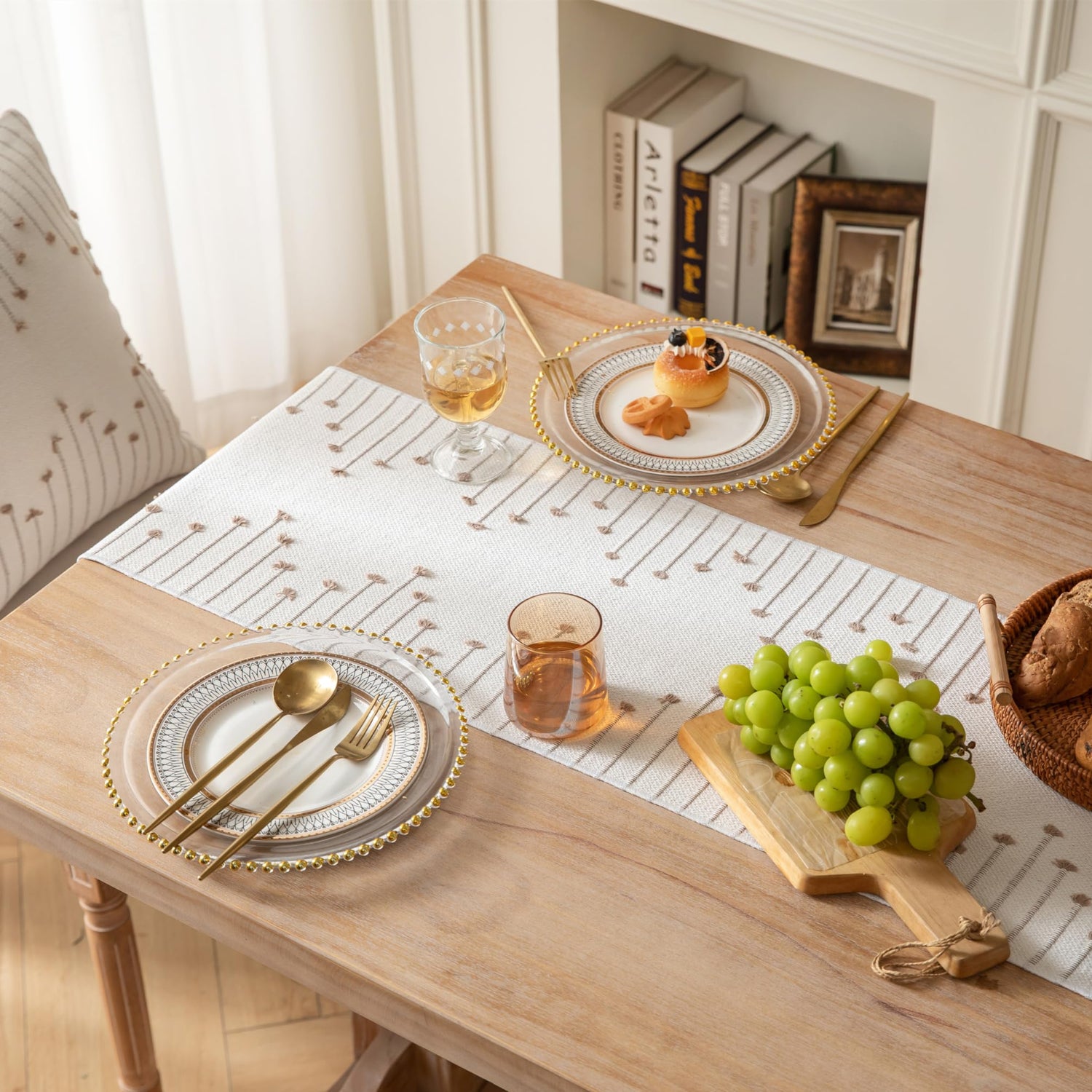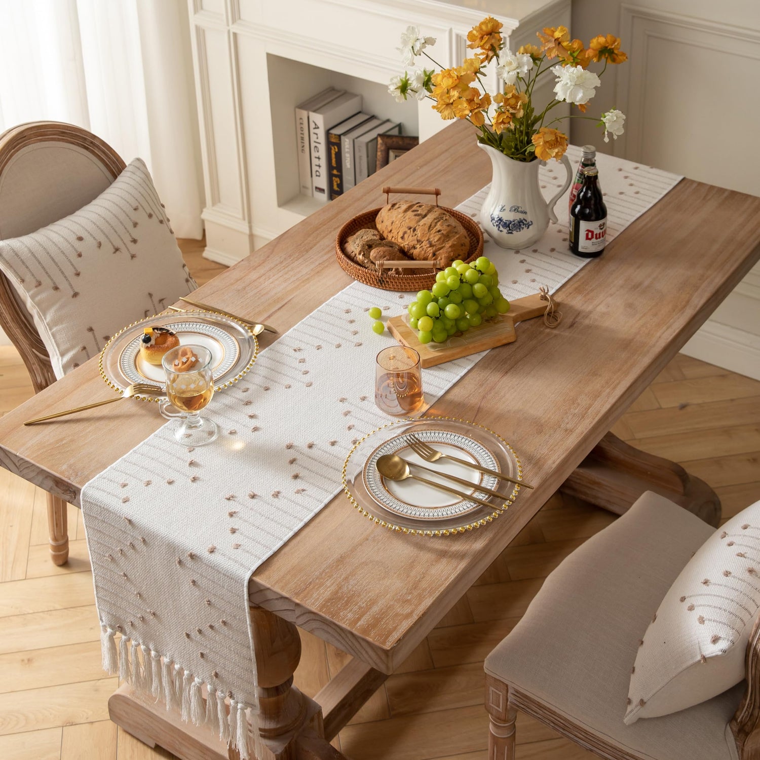 - 【Application】This boho runner for table is a great accent piece for more places than your dining room table! Try this modern farmhouse table runner on an entry way, on top of a dresser, a picnic table, an office desk, dressing table or as a coffee table runner. And a great anniversary or birthday gift.