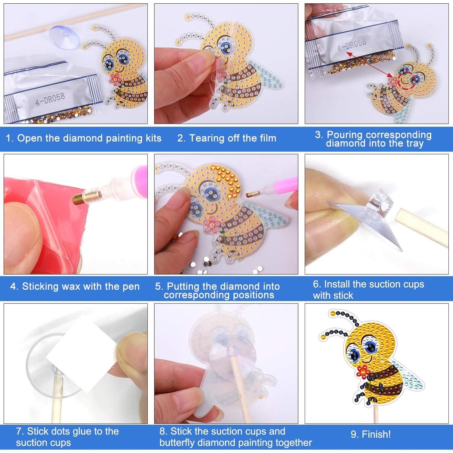 - 💐Diamond Art Sun-Catcher: Think about that sunlight shines was through the bee diamond art in the flower pot and reflect to the corner of your home, become colorful reflections. How funny!