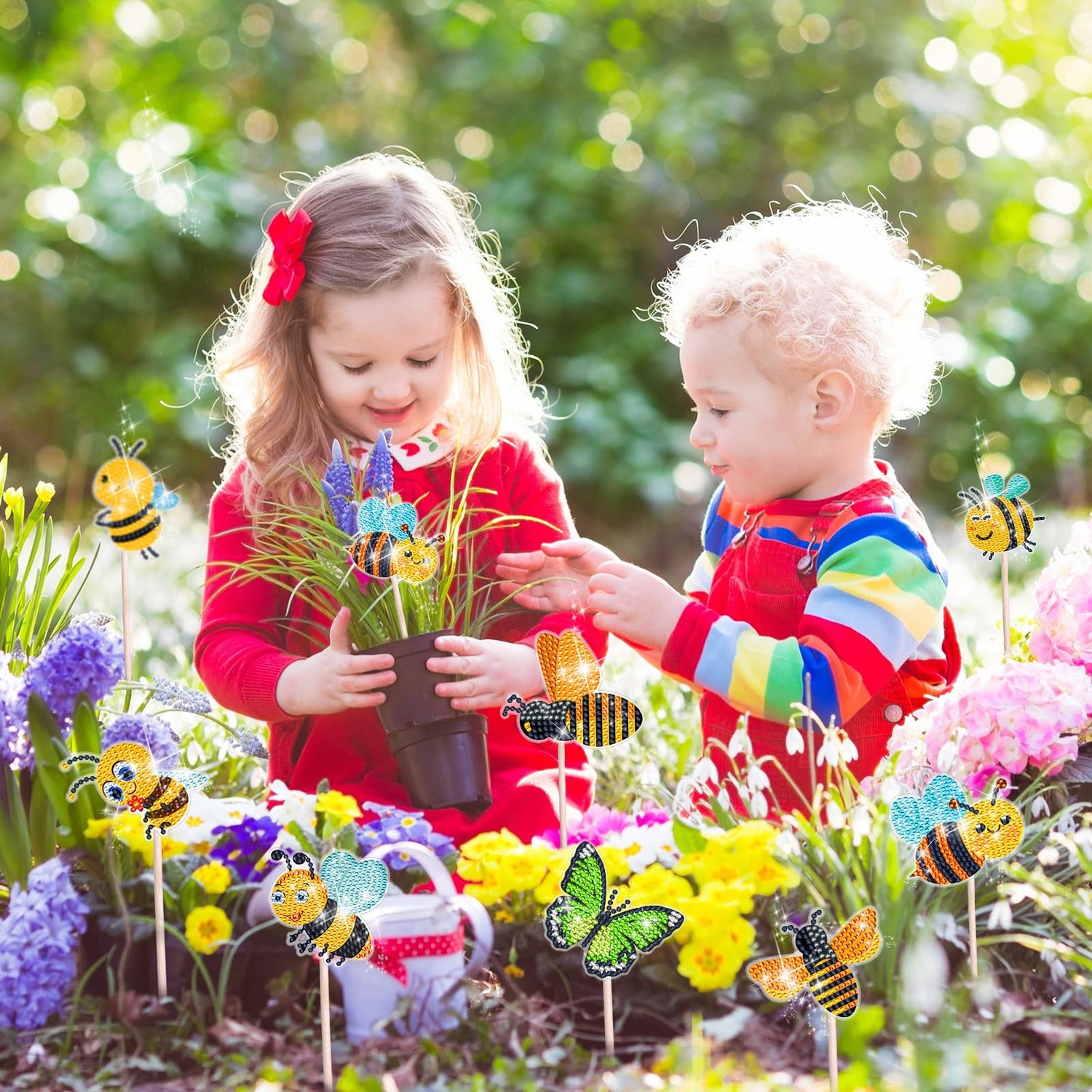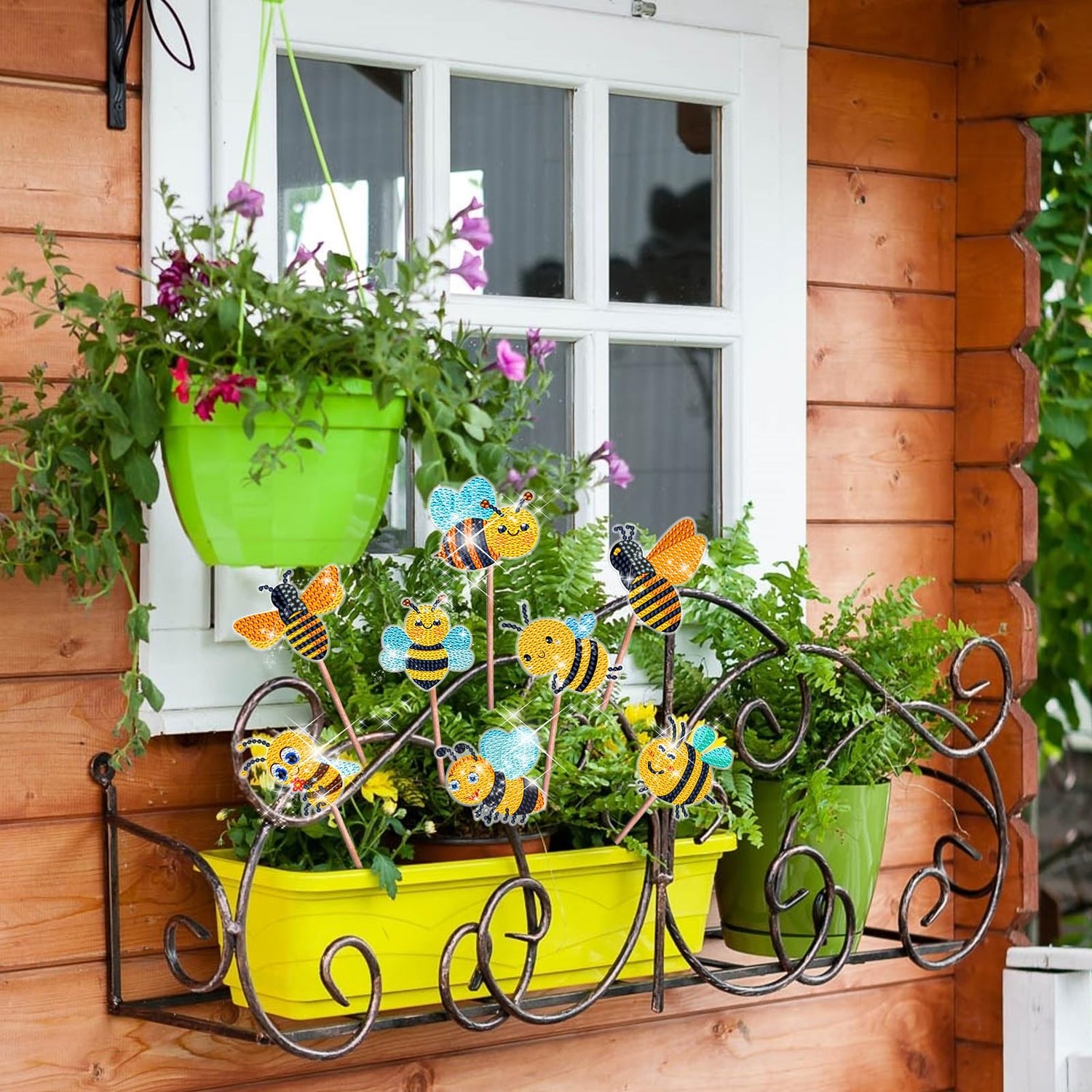 BSRESIN 8 Pcs Bee Diamond Painting Kits, Diamond Art Kits for Garden Decor, Bee Stakes Diamond Art Kits for Adults, Crafts for Adults