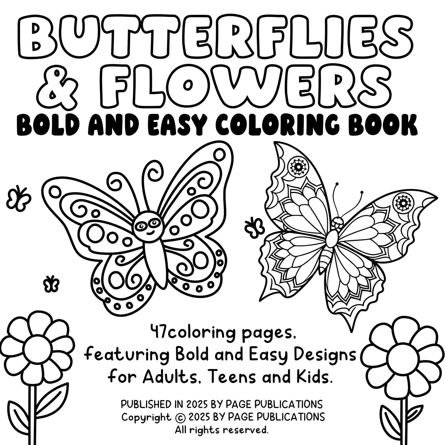 BUTTERFLIES AND FLOWERS Bold and Easy Coloring Book: Relaxing Large-Print Designs for Stress Relief and Joy