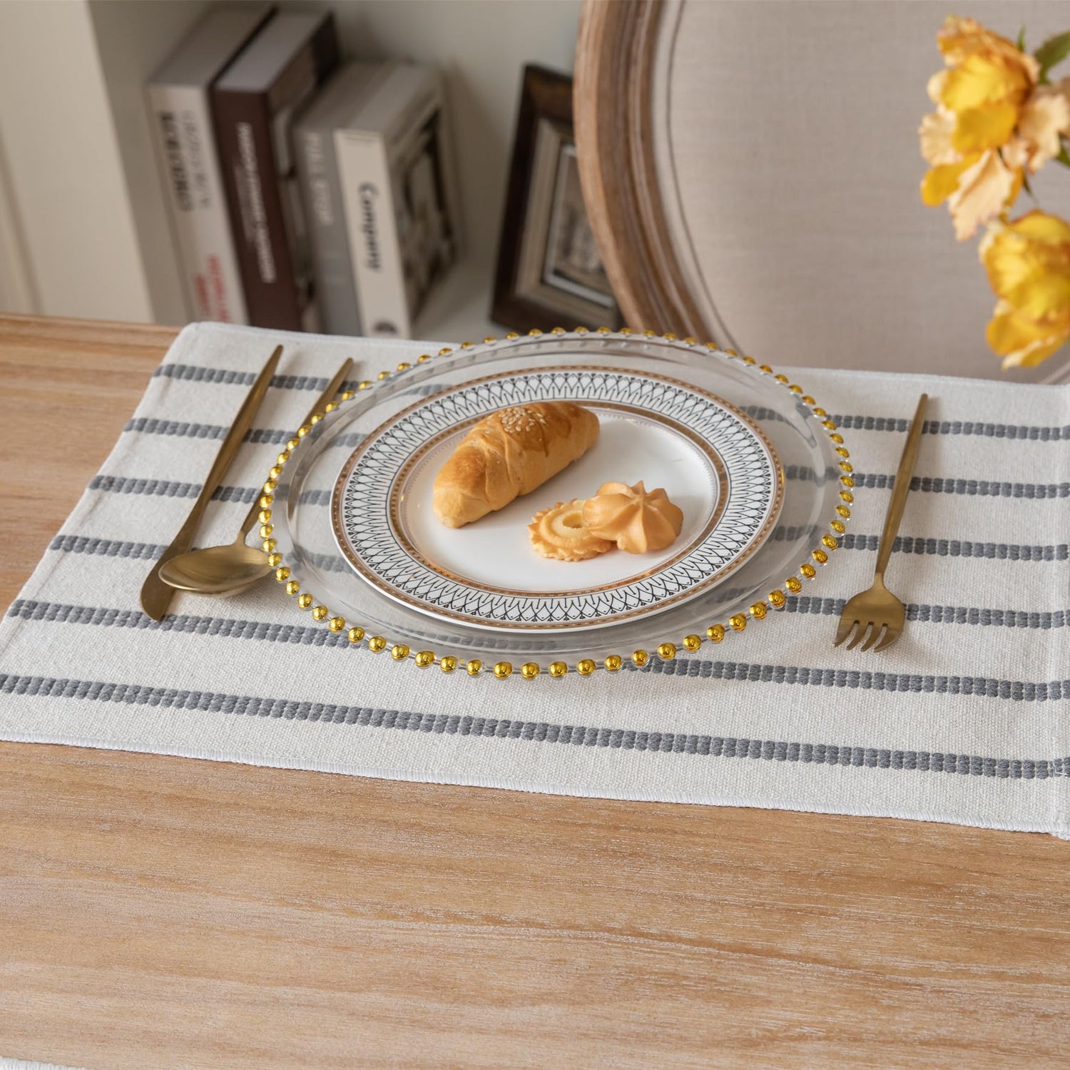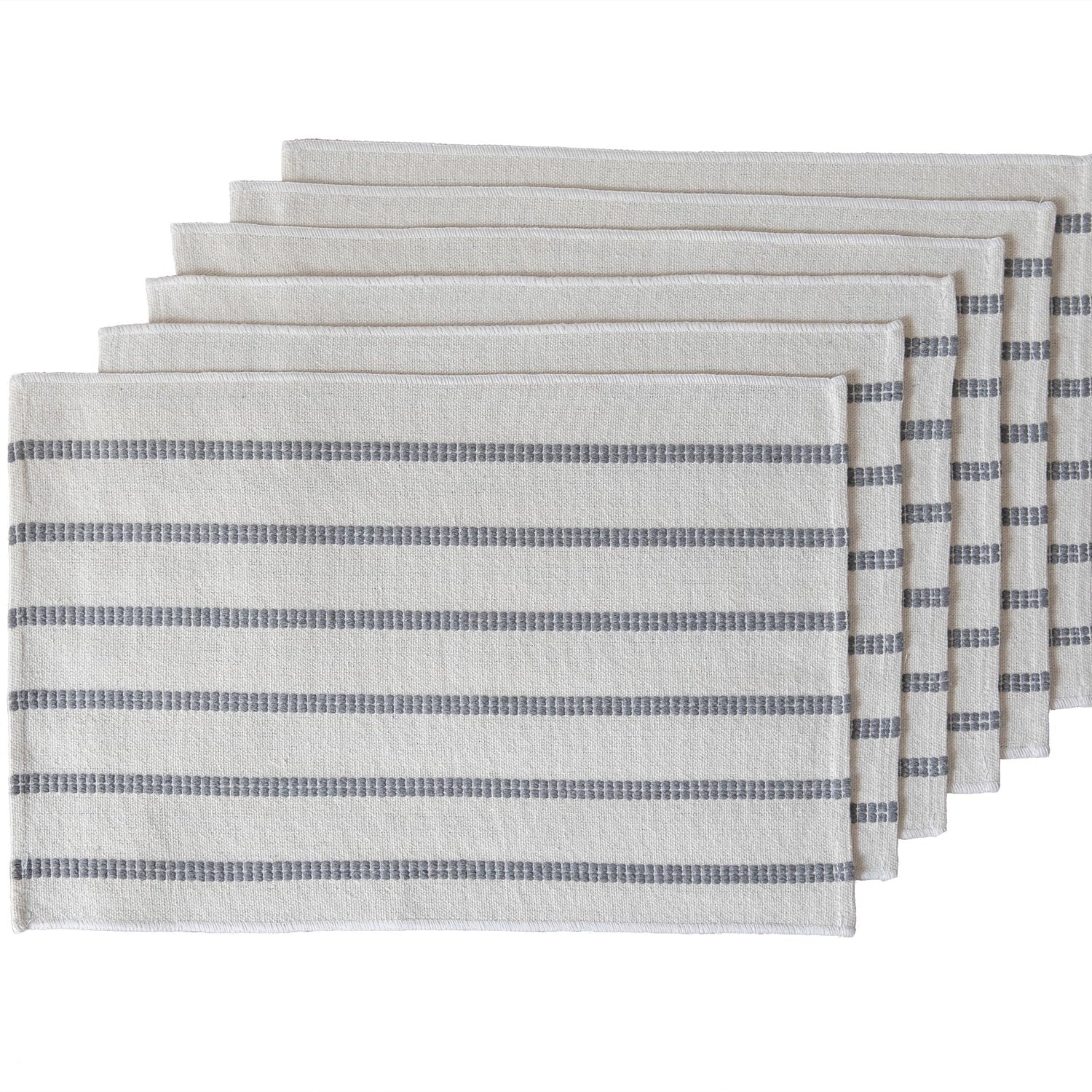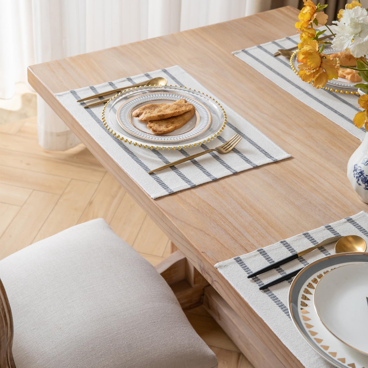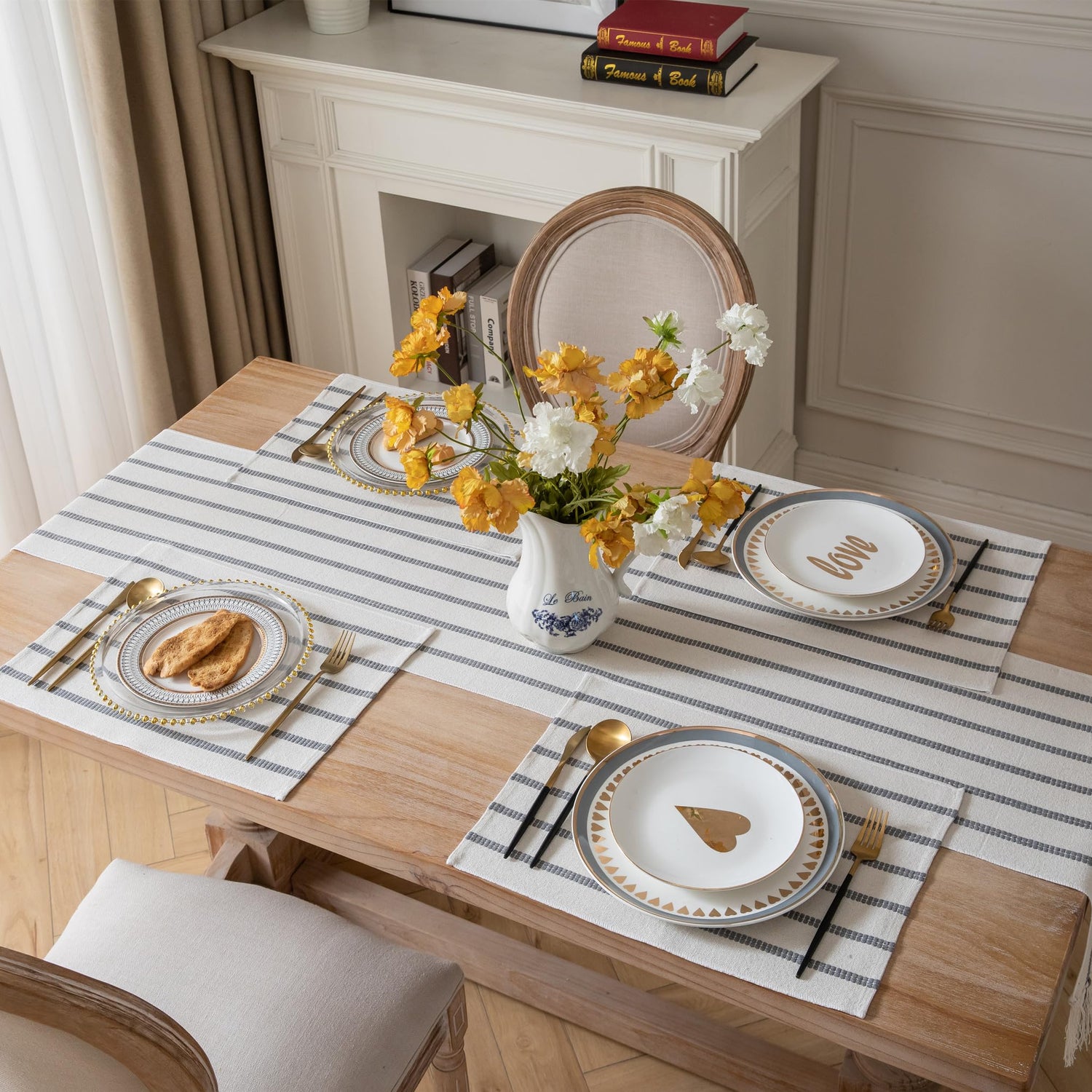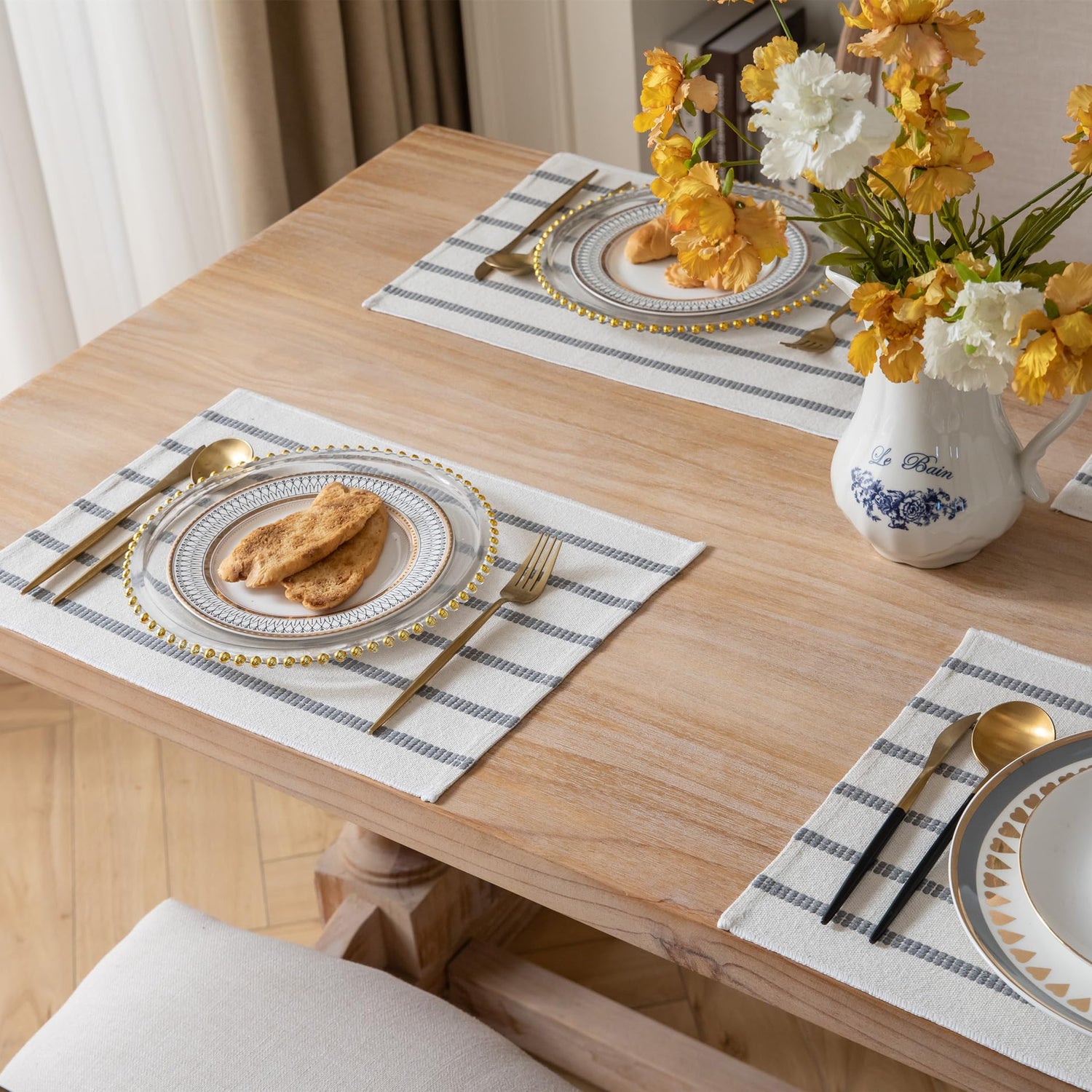 Caflife Boho Farmhouse Placemats Set of 6, Grey Stripes Cotton Linen Woven Table Mats for Modern Dining Table, 13x19 Inch Rustic Kitchen Decor Place Mats