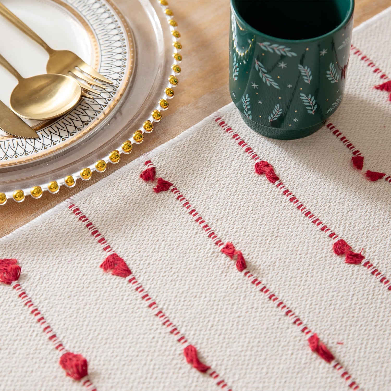 - 【Thoughtful Design】The color is natural and comfortable, mini tassel adds cutenesscan protect your table from scratching, spills, and messes perfectly, add a beautiful design to your home decorations for living room décor, both sides are beautiful and available. The simple striped pattern is classic and modern