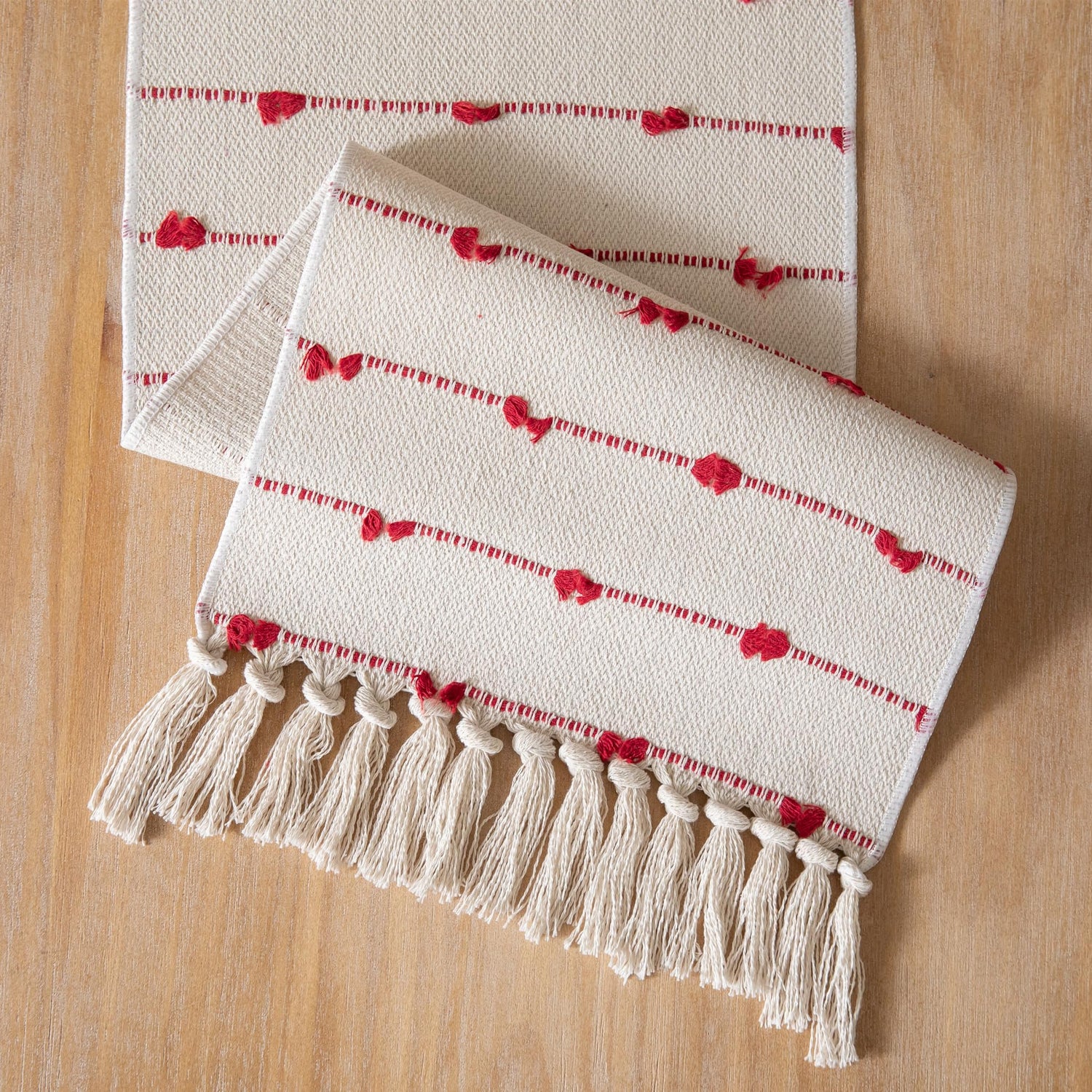 Caflife Christmas Table Runner 90 Inchs Long for Modern Farmhouse Room Home Christmas Decorations, Boho Red Table Runner, Natural Cotton Woven with Tassels for Holiday Kitchen and Dining Table Decor