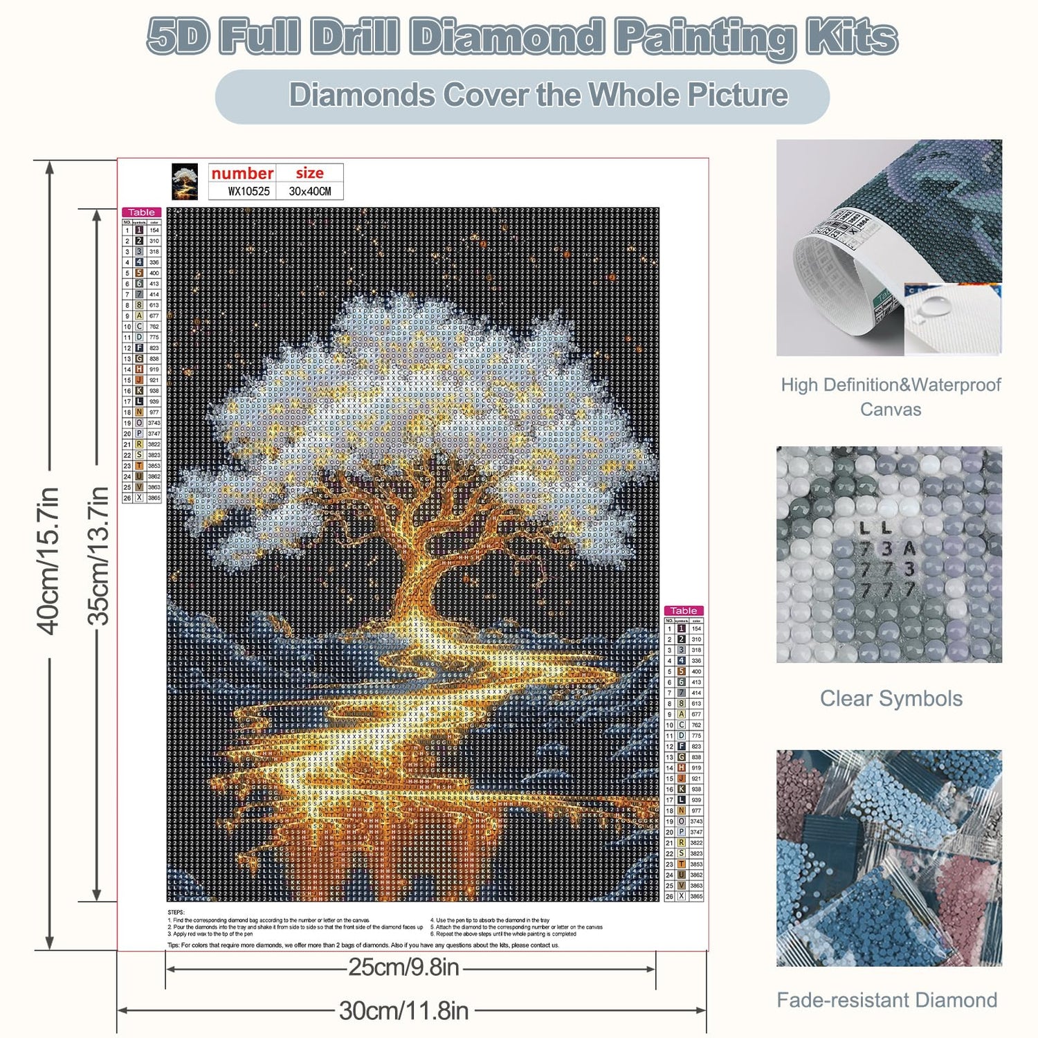 - 【Easy to Operate】The letter symbols on canvas are clear and easy to read. It's easy for diamonds to stick and maintain pattern, wouldn't fall off. You can easily complete the painting according to the steps. The diamond's color is fade-resistant, ensuring a long-lasting and vibrant finished result.