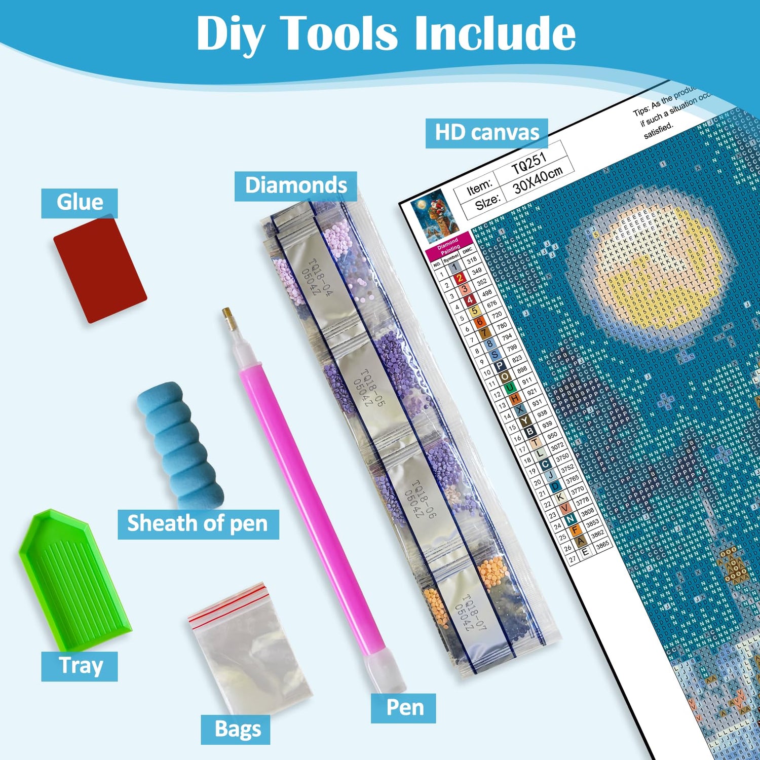 - 【Package Includes】Each diamond art painting comes with all tools in needed.With diamond dot kits for adults, you will get 1pc 11.8x15.7 inches painting canvas, 1*diamond pen, 1*cube diamond tray, 1*red glue clay(2cm*4cm), 1*pen grip, 10*plastic ziplock bags for putting diamonds, enough colorful round diamonds. We provide an extra 20% diamonds that the adult diamond painting kits can be completed smoothly.