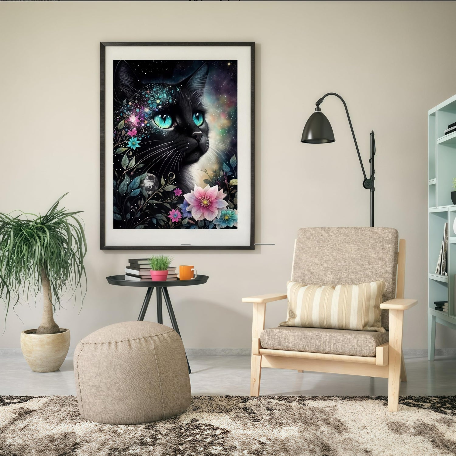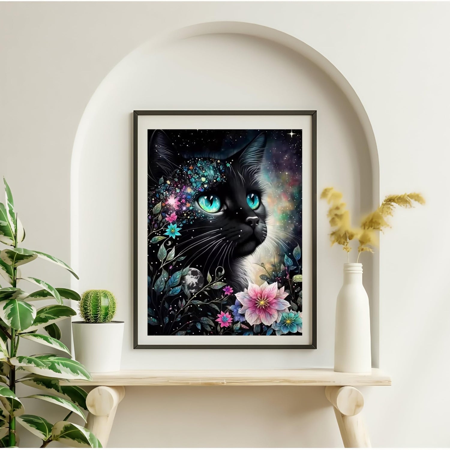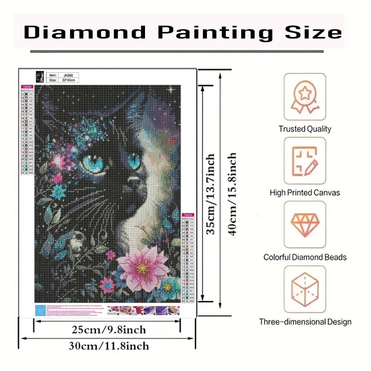 CSZPPQAF 5D Diamond Art Kits for Adults, Black Cat Flower Diamond Painting Kits for Adults Beginner, 5D DIY Full Drill Diamond Dots Paint by Diamonds Gem Painting for Home Decor 12x16 Inch
