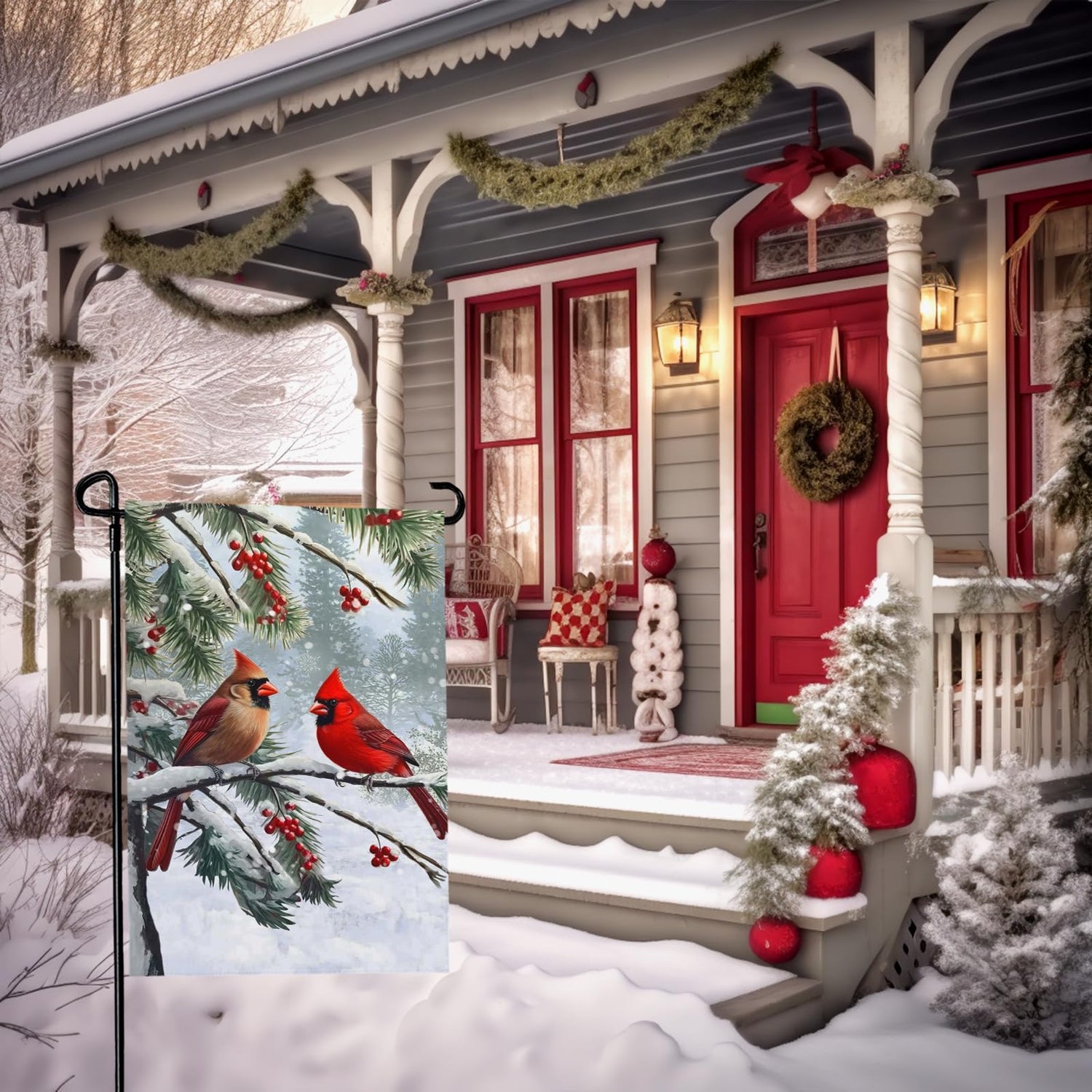 - Elegant Design: Our state-of-the-art printing process ensures a vibrant and sharp pattern on both sides of the winter garden flags with bright colors and Cardinal Pair patterns.