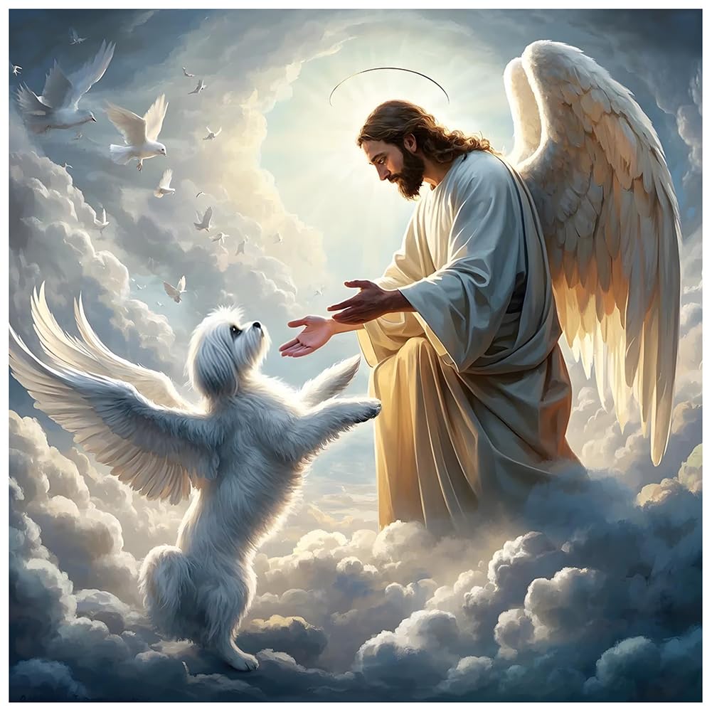 DIADAY 5D Dog Diamond Painting Kits, Angel Dog Diamond Art Kits for Adults, DIY Craft Full Drill Round Gem Diamond Dots Art Home Wall Decor Gift 12 x 12 Inches
