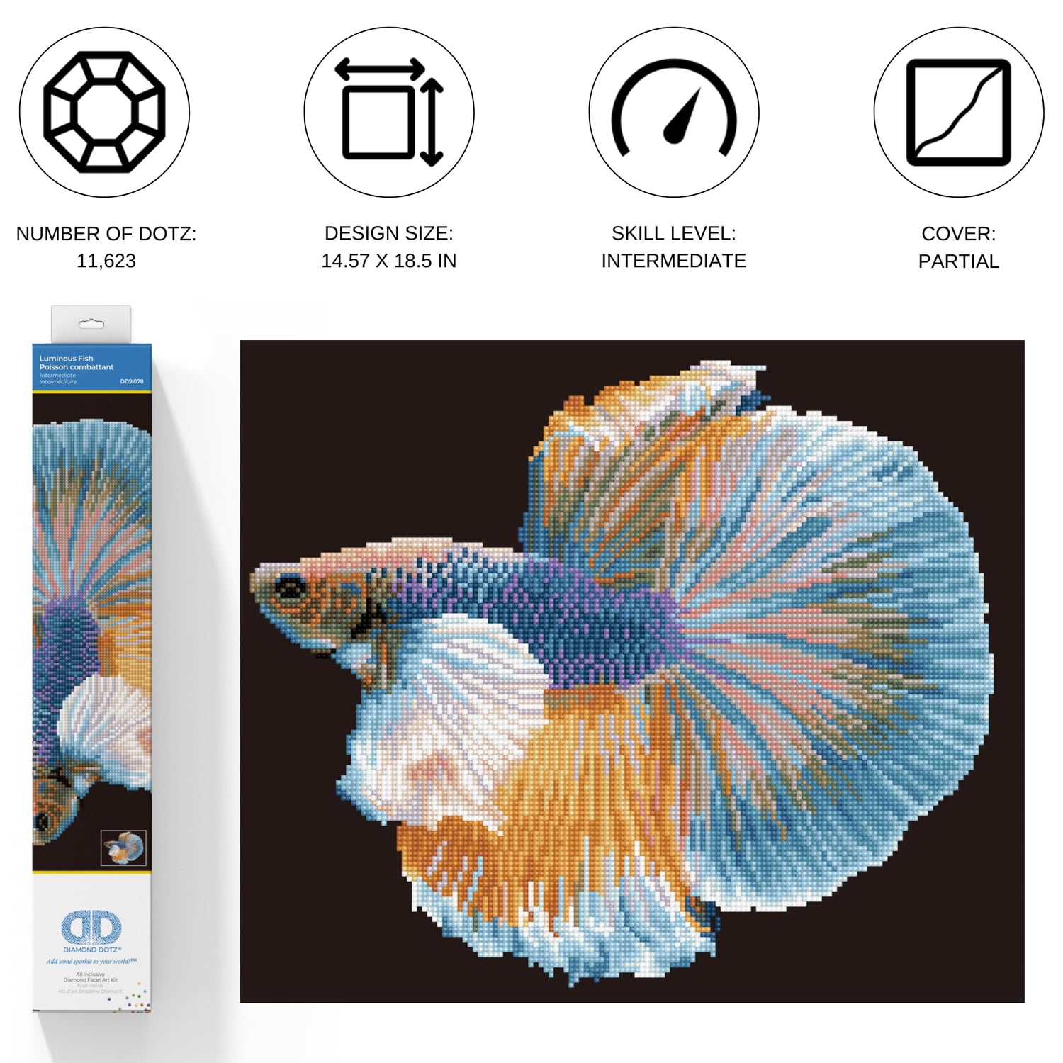 DIAMOND DOTZ Luminous Fish Diamond Painting Kits for Adults - Diamond Art Kits a Relaxing Creative Craft Kit with Dotz Gems 14.6"x18.5"