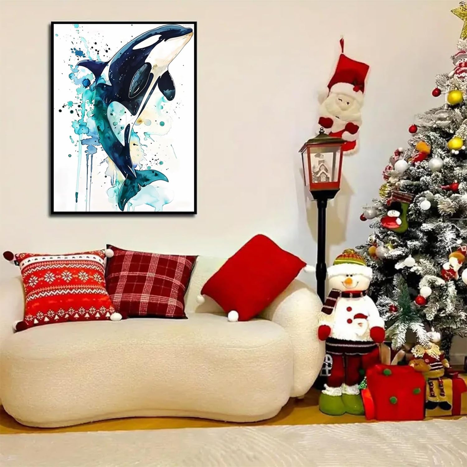 Diamond Painting for Adults 5D Whale Jumping into The Sea Full Drill Diamond Art Kit, DIY Whale Gem Painting Set Bedroom Living Room Wall Decor Gifts 12x16 inch