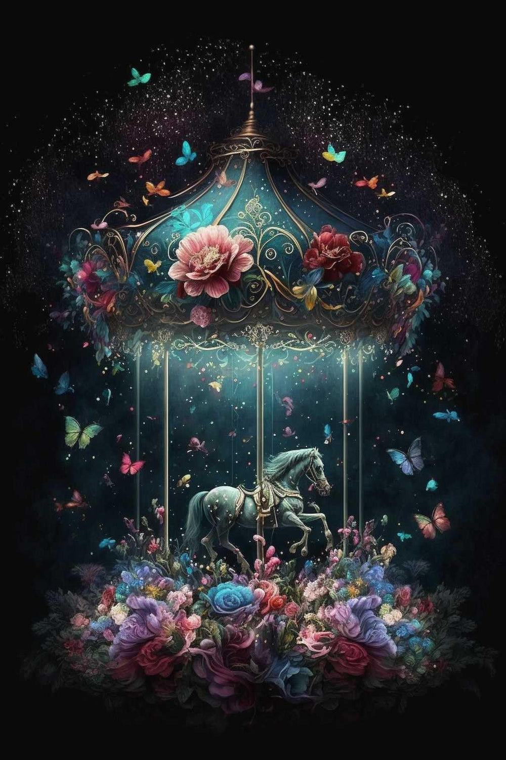 Diamond Painting Kits Round Full Drill 5D,Carousel Music Box Pattern DIY Paint with Diamonds Art Crystal Rhinestone Cross Stitch for Home Office Wall Crafts Decorations 12x8 Inch