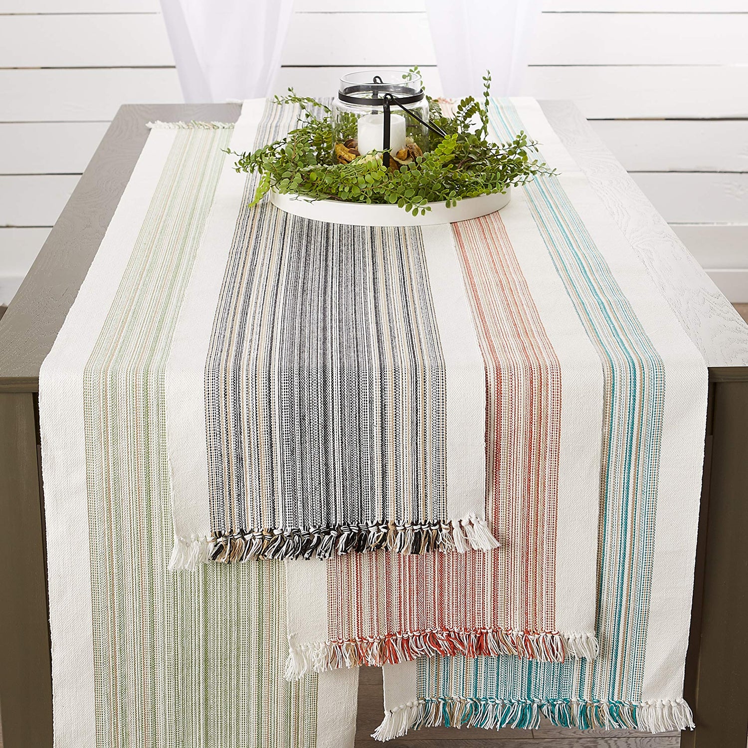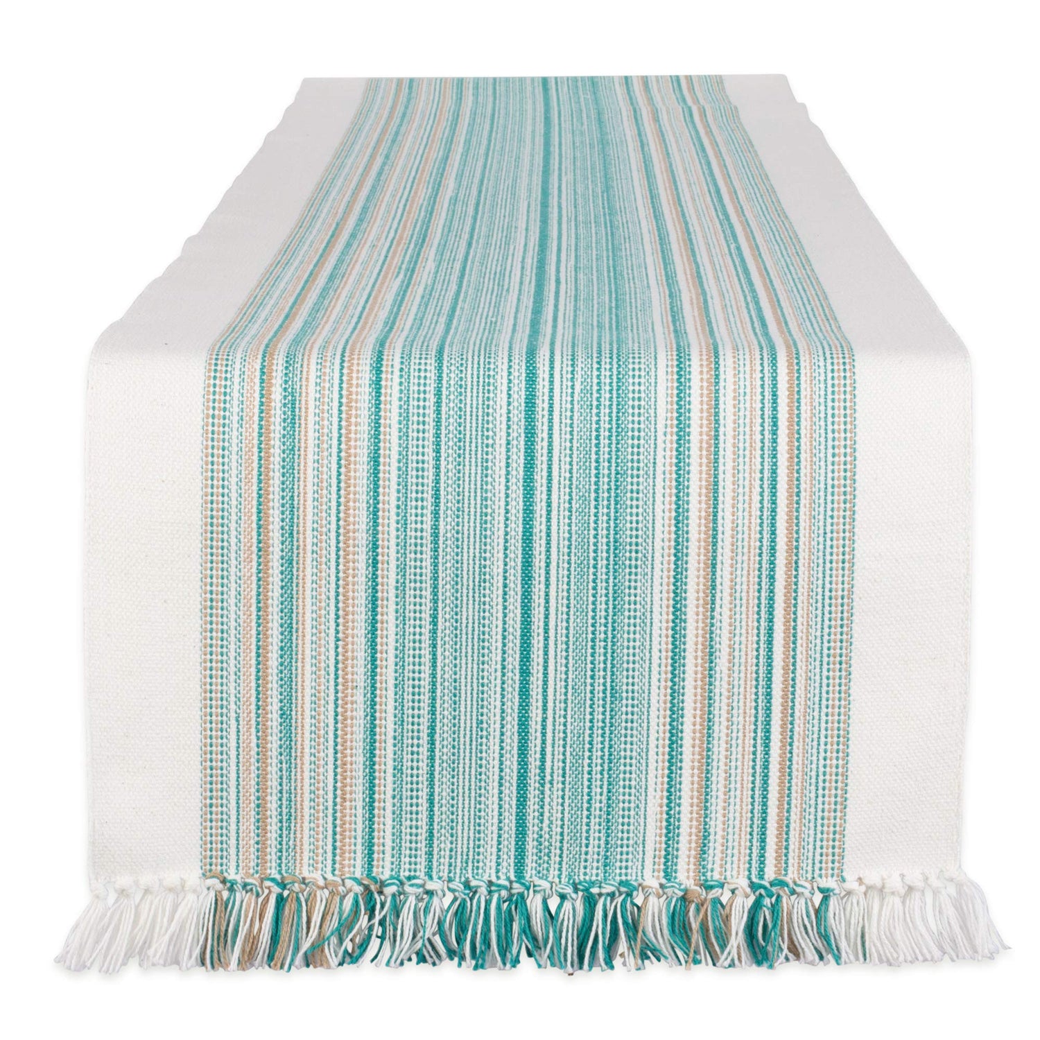 DII Everyday Collection Fringed Stripe Tabletop, Table Runner, 14x72, Teal