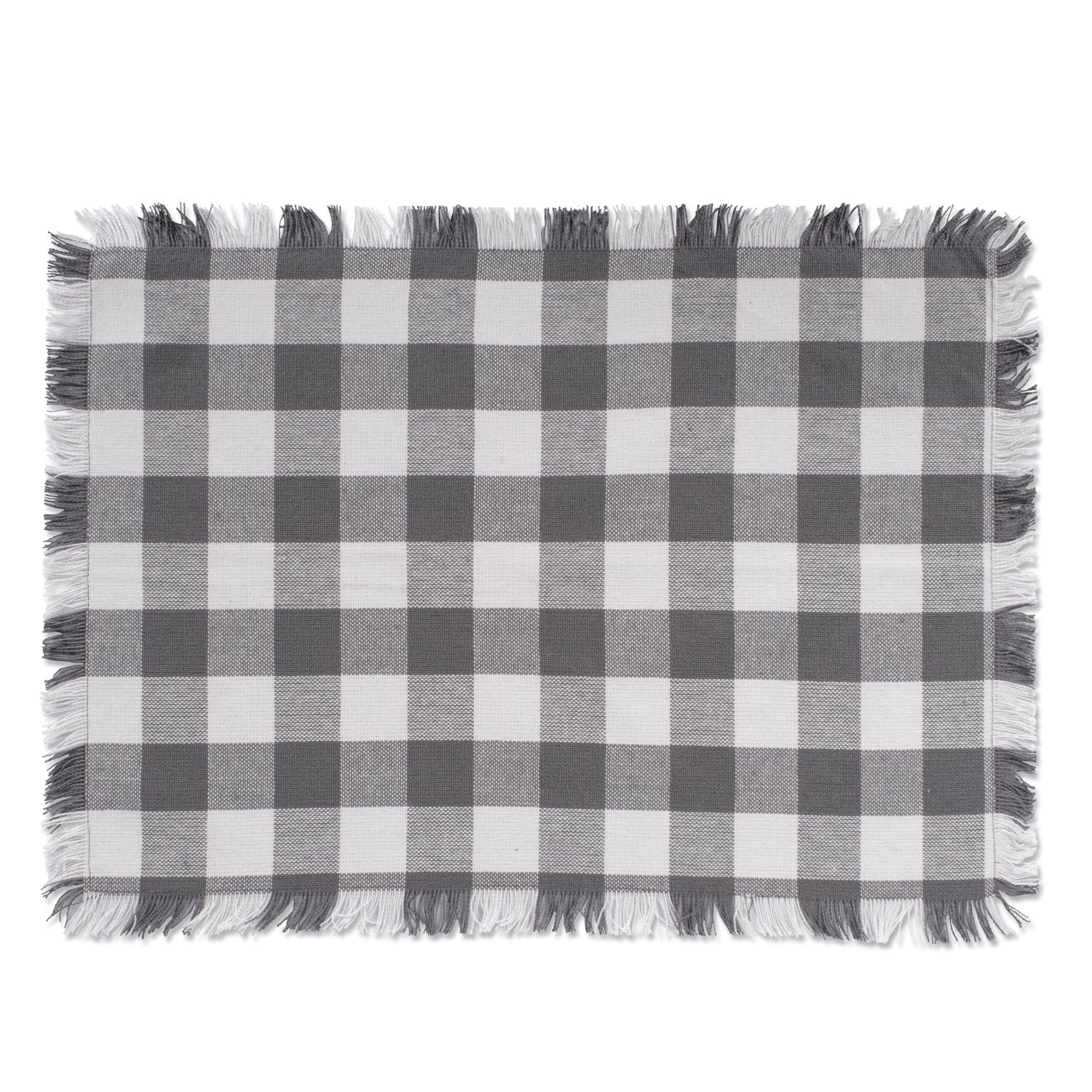 DII Heavyweight Fringed Check Tabletop Collection, Placemat Set, 13x19, Gray, 6 Piece
