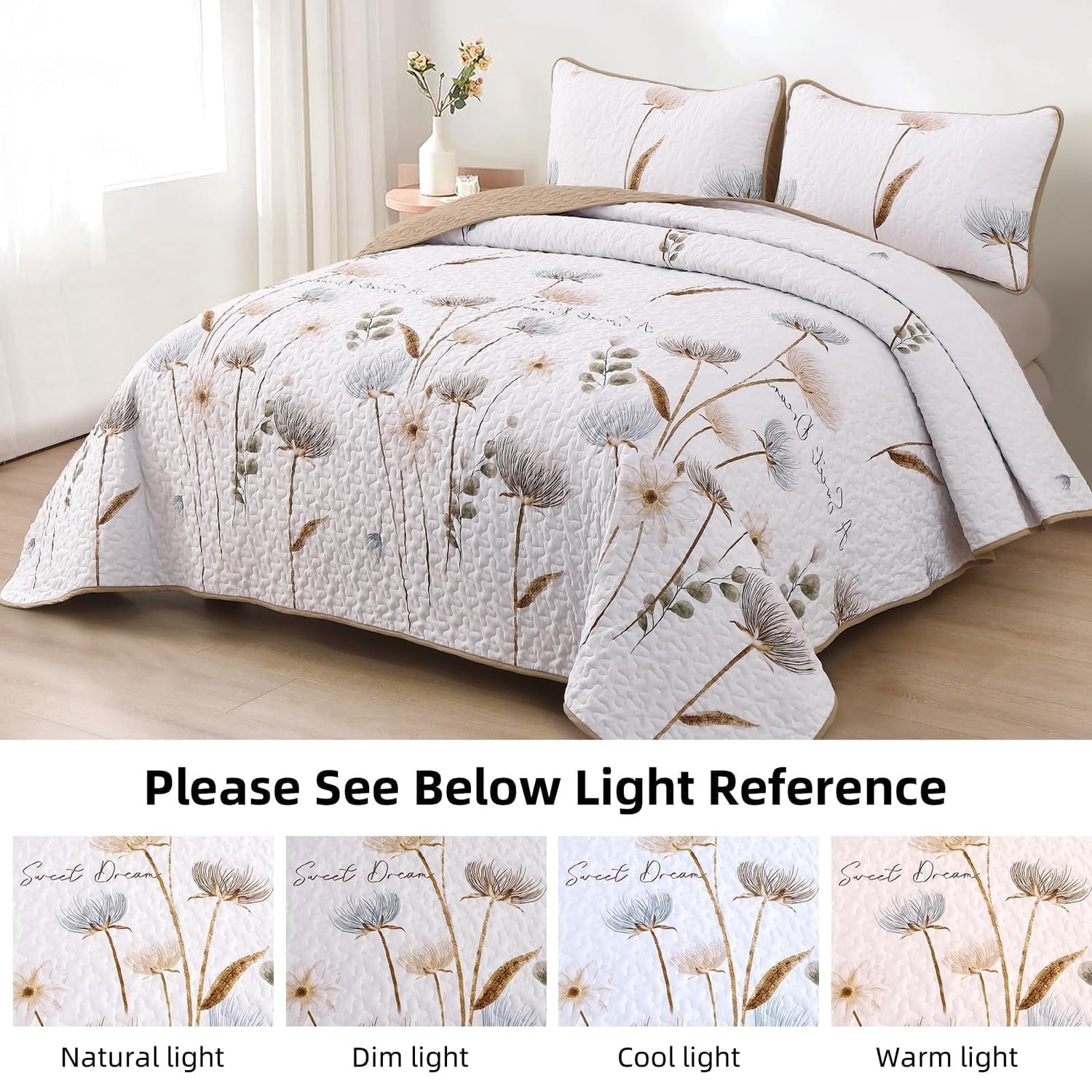 - 【Floral Queen Quilt】: The floral pattern of the floral quilts set creates a comfortable and warm atmosphere in spring, summer, fall, and winter. Our Khaki/beige/tan quilt bedding set is fashionable and beautiful, perfect for your home use and updated decoration