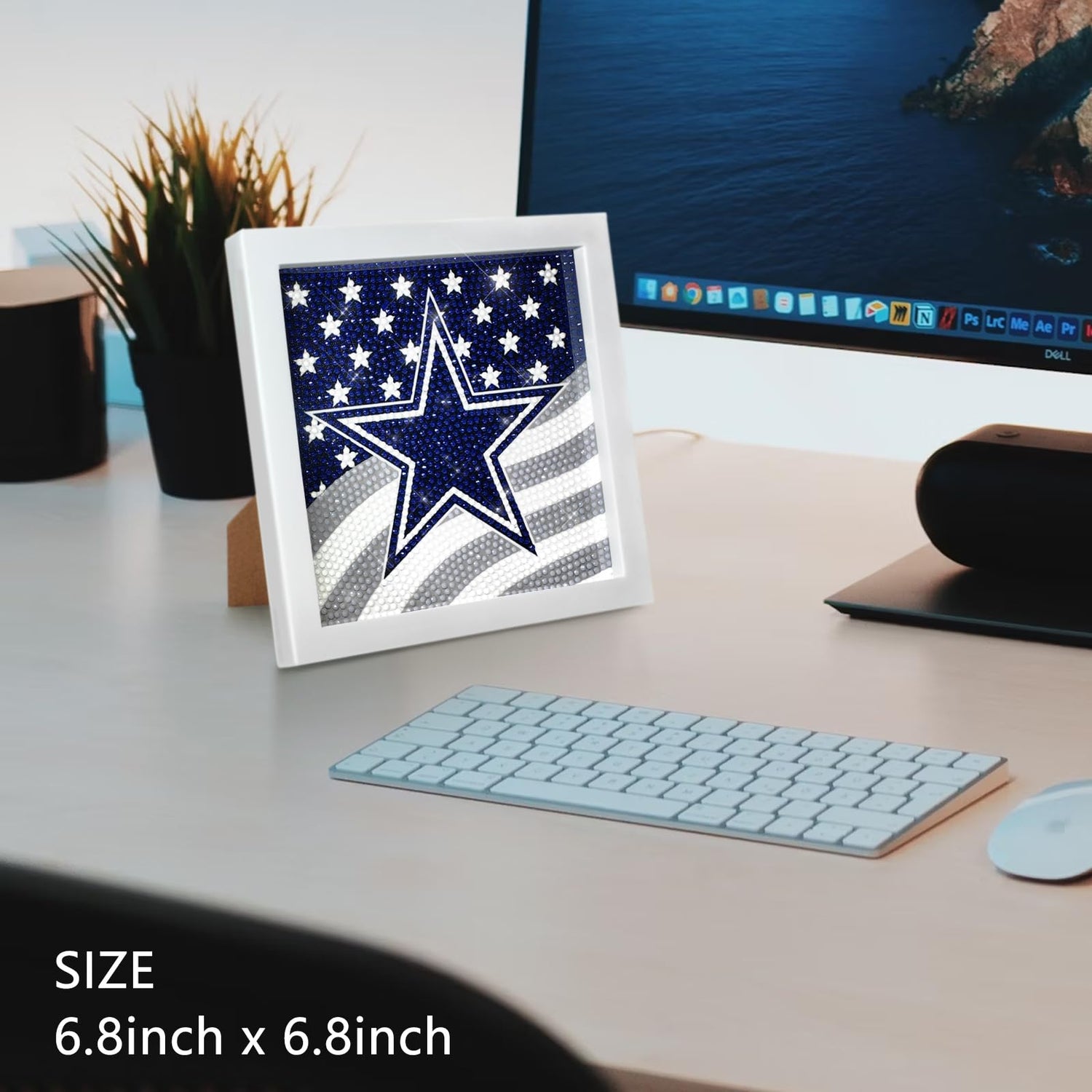 - Size: 6.8inch X 6.8inch, includes: Diamond particles, tools (pen, tray,)
