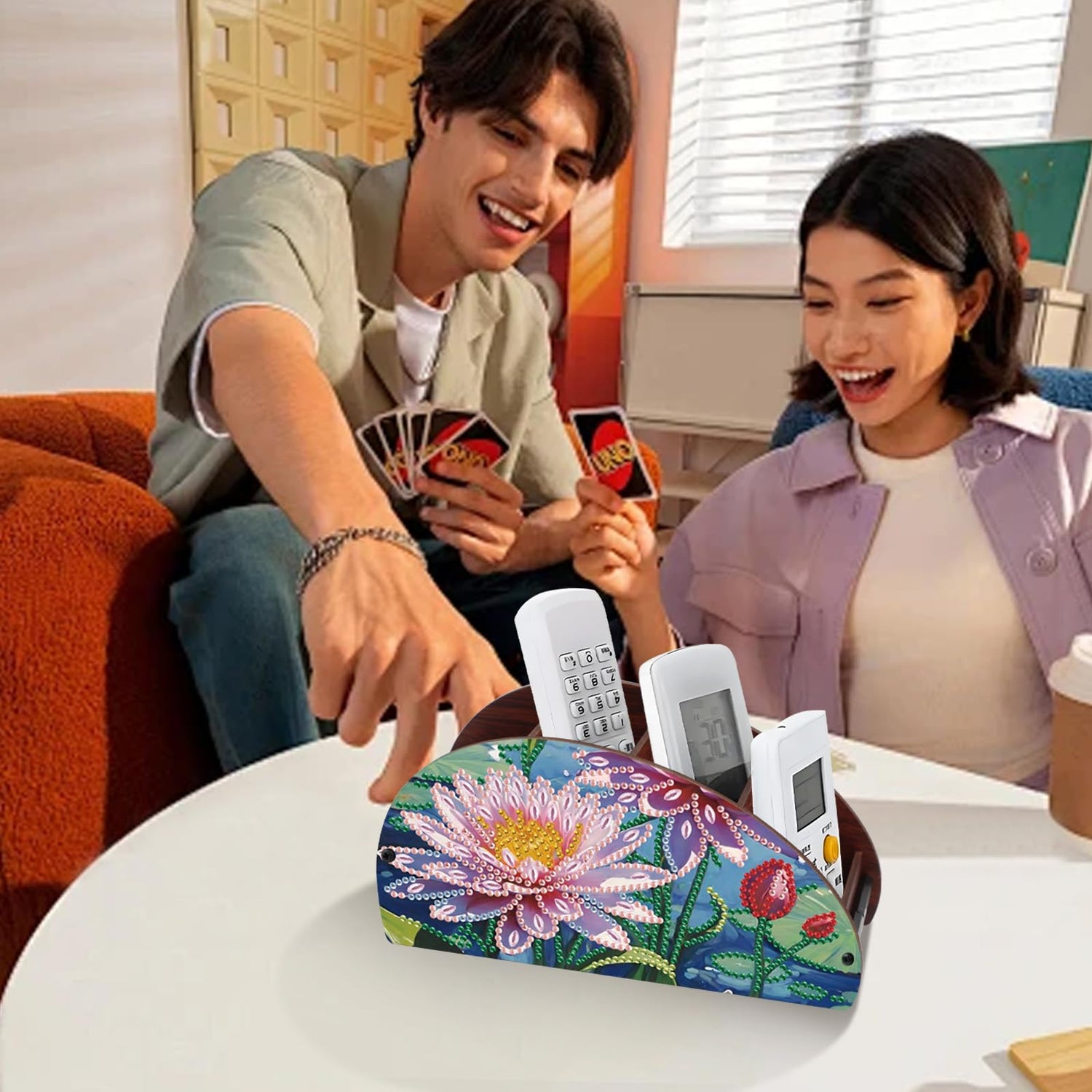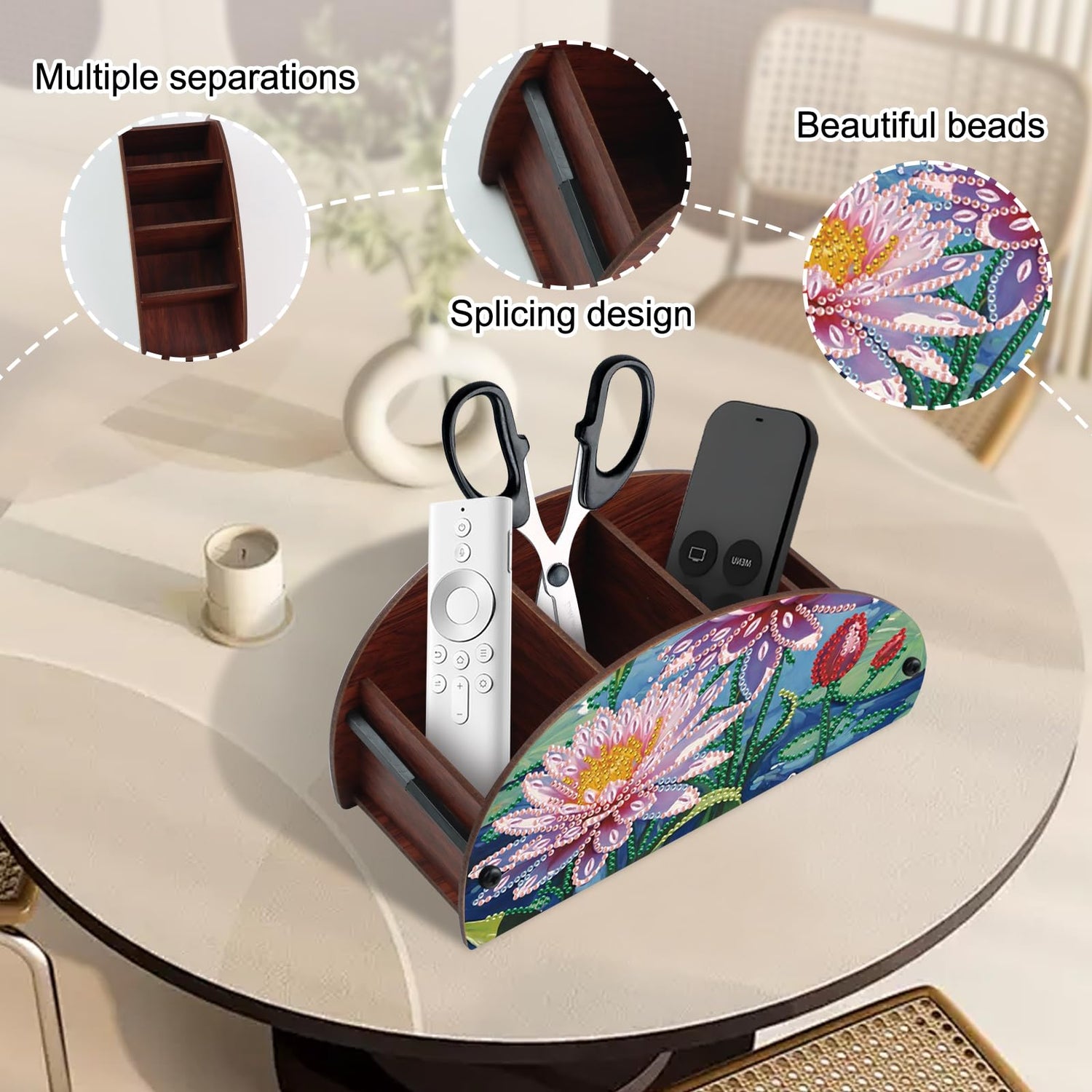 - 📦【Multi-Use Functional Organizer】Includes multiple compartments to neatly store TV and AC remotes, makeup brushes, pens, mobile phones, or office essentials—keeping your space tidy with artistic flair