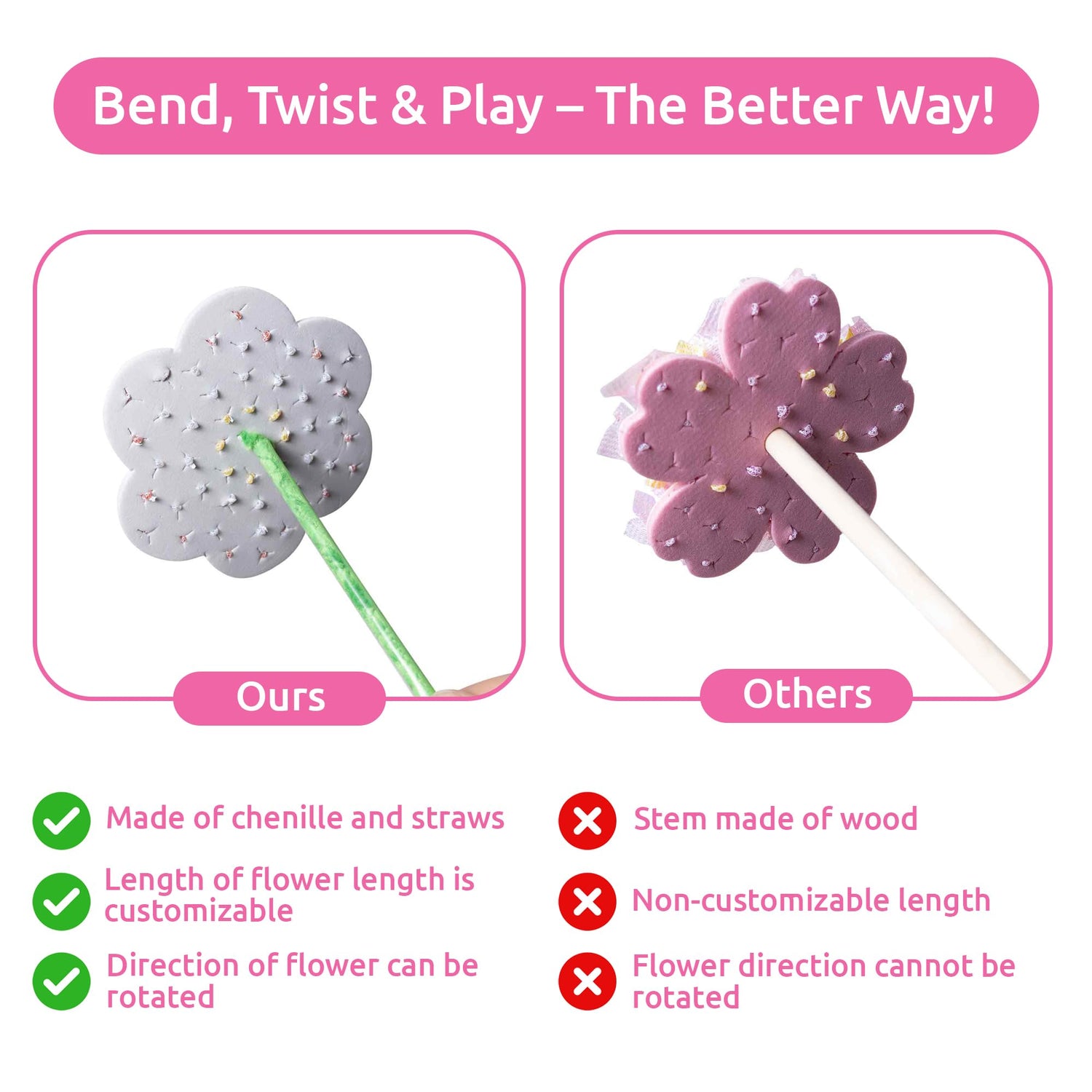 - Different From The Rest: Our floral poke art kits for kids comes with wire chenille stems and straws. This allows children the ability to customize the length of the flower and angle for the best possible appearance. A unique feature not found with others.