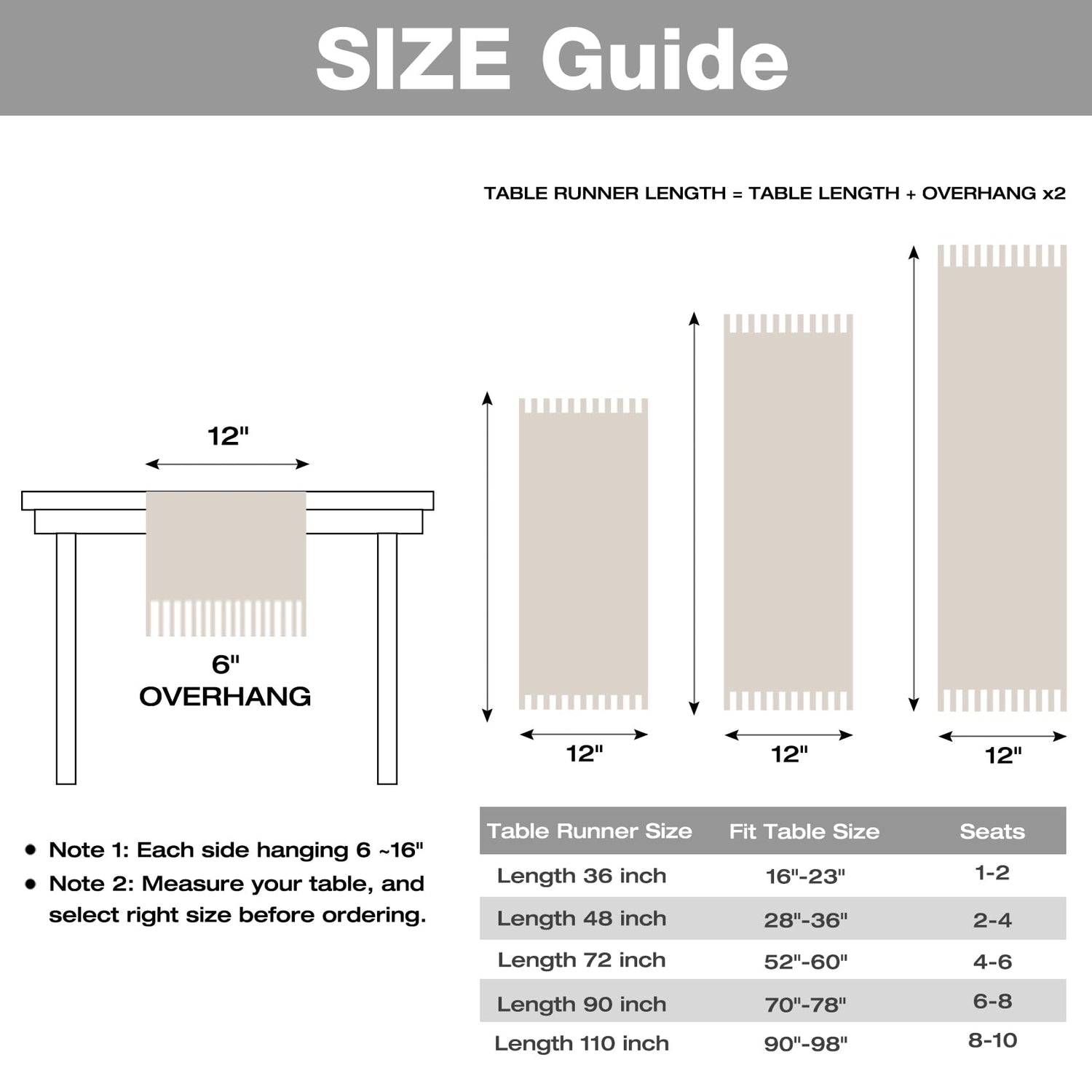 - Multiple Size Options: Available in five versatile lengths (36, 48, 72, 90, and 110 inches) with a consistent width of 12 inches, this table runner is designed to fit a variety of settings and tables, making it perfect for any home or event decor.