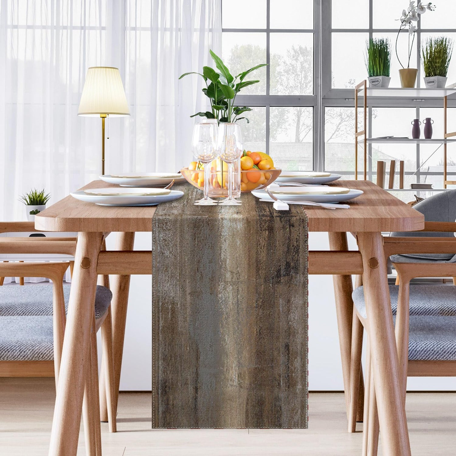 Emvency Farmhouse Table Runner, Abstract Grey and Dark Brown Art Painting for Kitchen Coffee Table Family Dinners Holiday Parties Wedding Events Decor(13x60 inch)