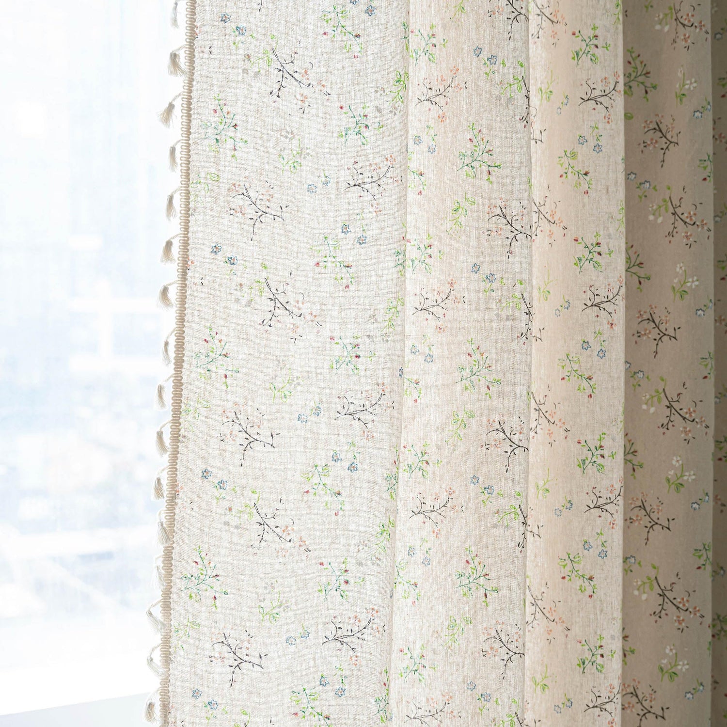 ENJOYBRIDAL Floral Bedroom Curtains 84 Inch Length 2 Panels Set Farmhouse Semi Sheer Living Room Drapes Cotton Linen Blend Bohemian Window Curtain Panels with Tassel Beige Rod Pocket Drapes