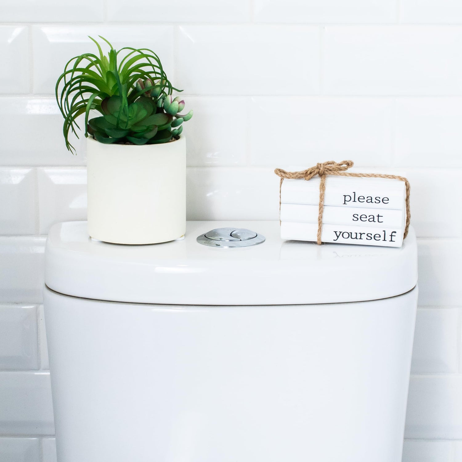 Farmhouse Bathroom Decor - Funny Rustic Wooden Mini Books for Your Restroom Shelf - The Perfect Small Decorative Accent for The Guest Bathroom, White