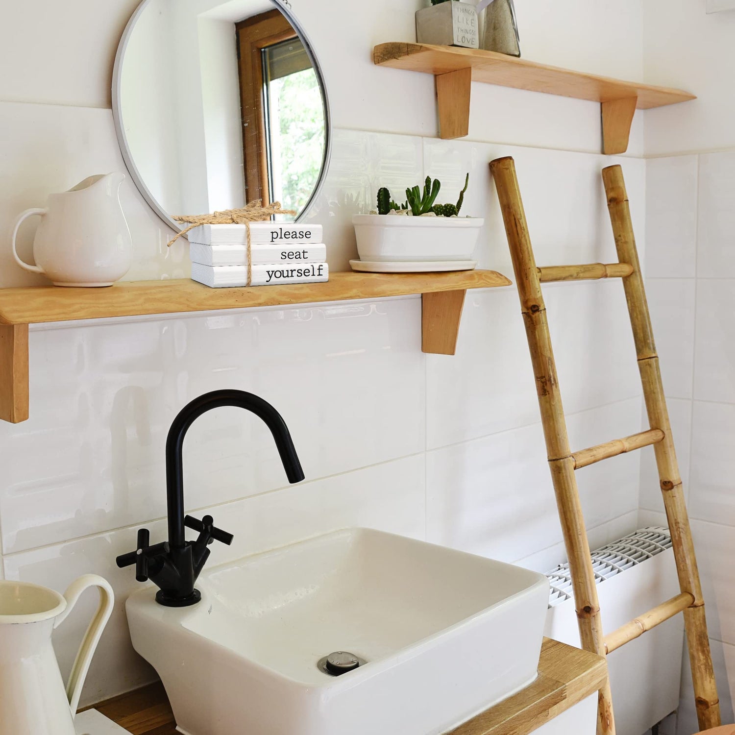 - Made Of Stylish Wood: Good looking, amusing and durable bathroom decor? You’re sure to love it! The chic decor books are stunningly crafted from solid wood and matched with a fun quote written in stylish lettering - truly an adorable eye-catcher for your bathroom