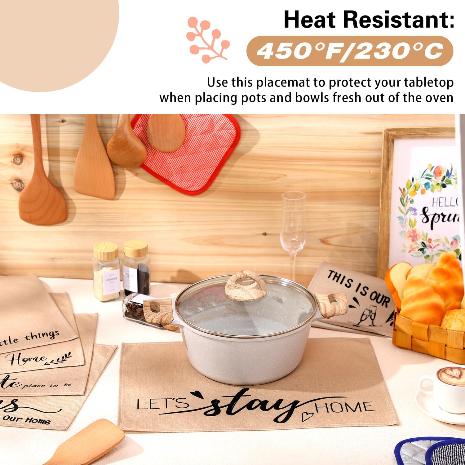 • Different Patterns and Color Options: each set of our country placemats contains 6 different saying and provides you with different color options; Such as:"Enjoy the little things","Let's stay home","This is our happy palce","This is us. Our life, Our story, Our home","Home SWEET Home","Together is my favorite place to be"; Suitable as a housewarming gift for relatives and friends