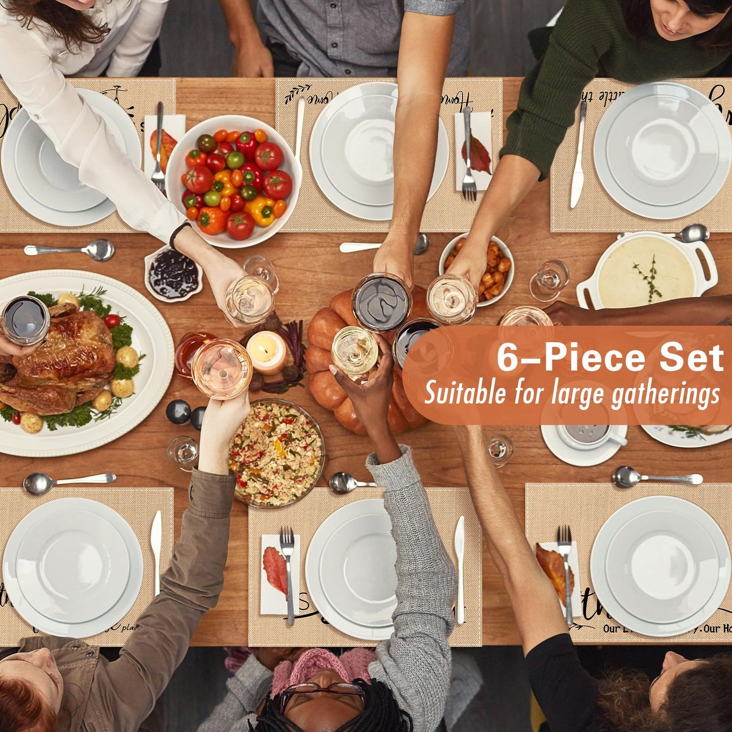 Farmhouse Placemats Set of 6 Linen Placemats 18x12'' Rustic Table Mats with Sayings Housewarming Gifts Country Tablemats Washable Cloth Place Mats for Farmhouse Table Setting(Khaki)