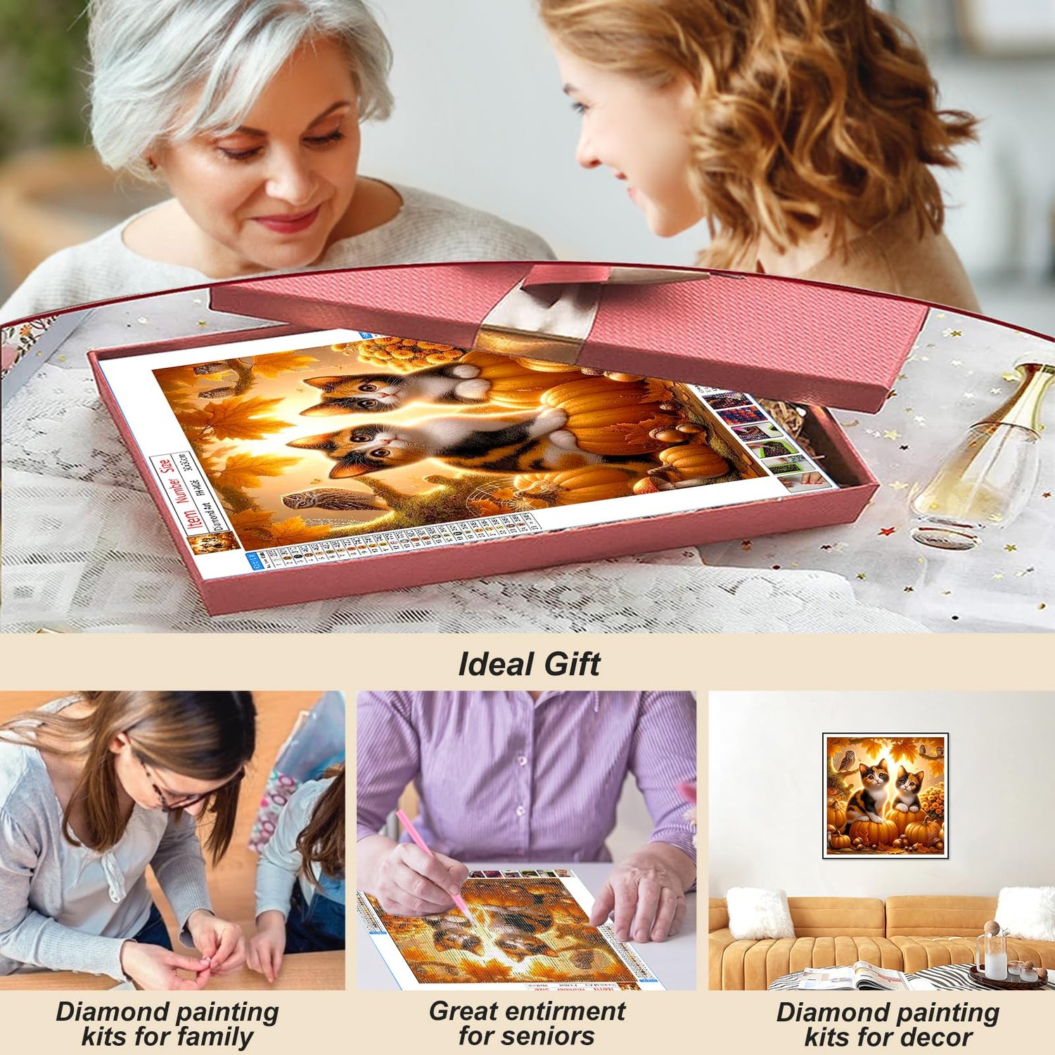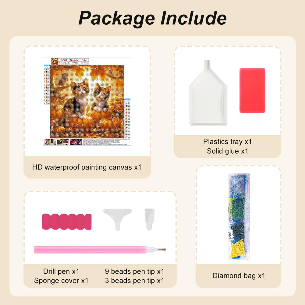 - 【Cat Diamond Painting】: This is a diamond art composed of kitten and Autumn Pumpkin elements