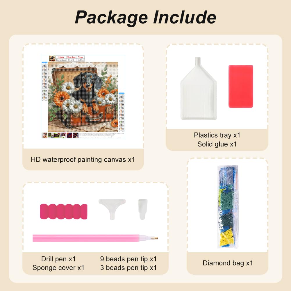 - 【EASY TO READ DIAMOND PAINTING KITS】The diamond art numbers and symbols on the HD canvas of Dachshund adult diamond painting Kit are clear and easy to read. Diamond art on HD printed canvas is waterproof and has a uniform texture