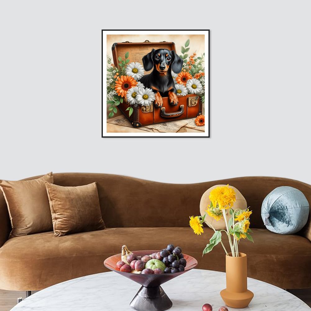 - 【Dog Diamond Painting】: This is a diamond art composed of Dachshund Daisy Flower elements